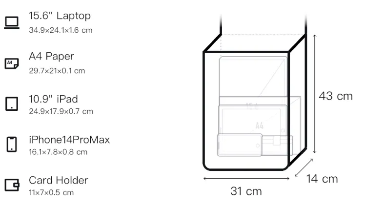 Длина (размер в длину): 31 см, Ширина корпуса: 14 см, Длина корпуса: 43 см