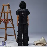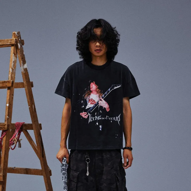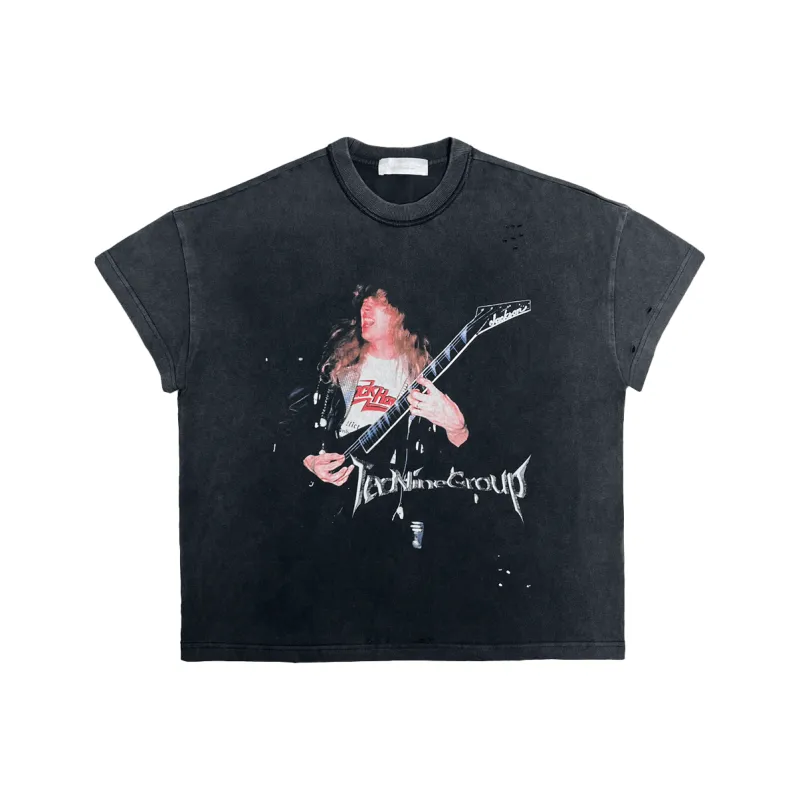TECNINE DROP2 Металл Band Tee TecNineGroup Рок Металл Полоска T Рубашка Унисекс Промытый черный