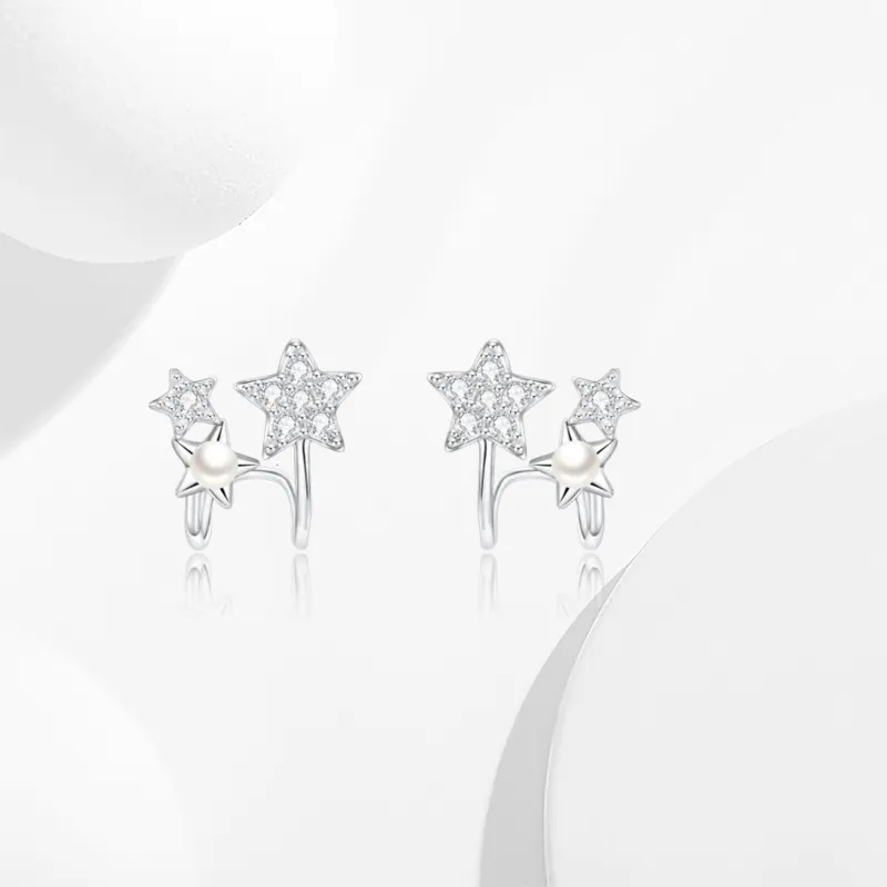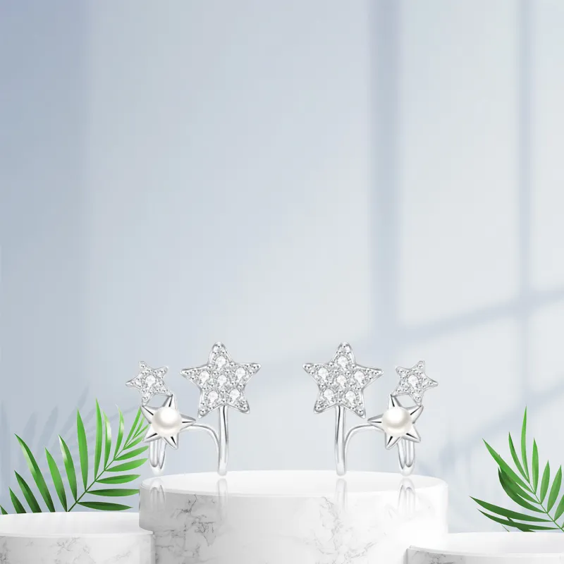 Серьги-гвоздики с жемчугом в форме пятиконечной звезды