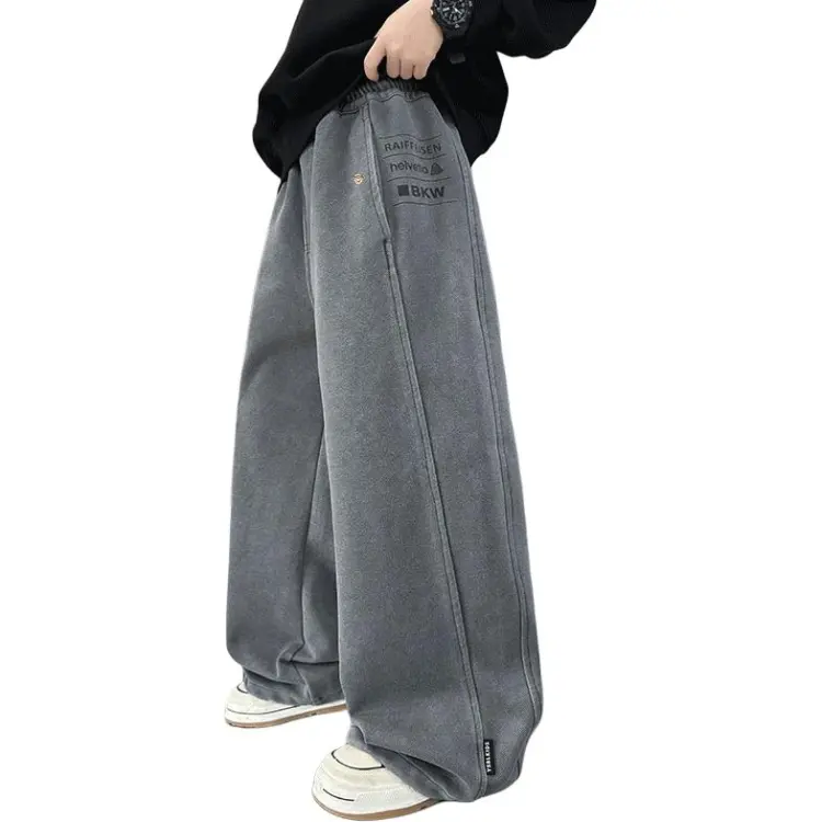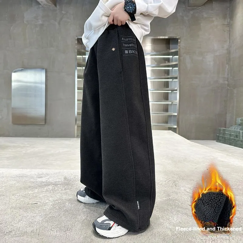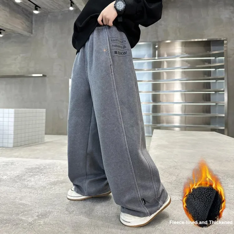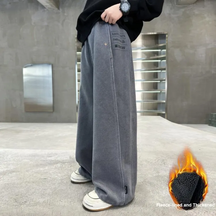 Серые утолщенные штаны с флисовой подкладкой