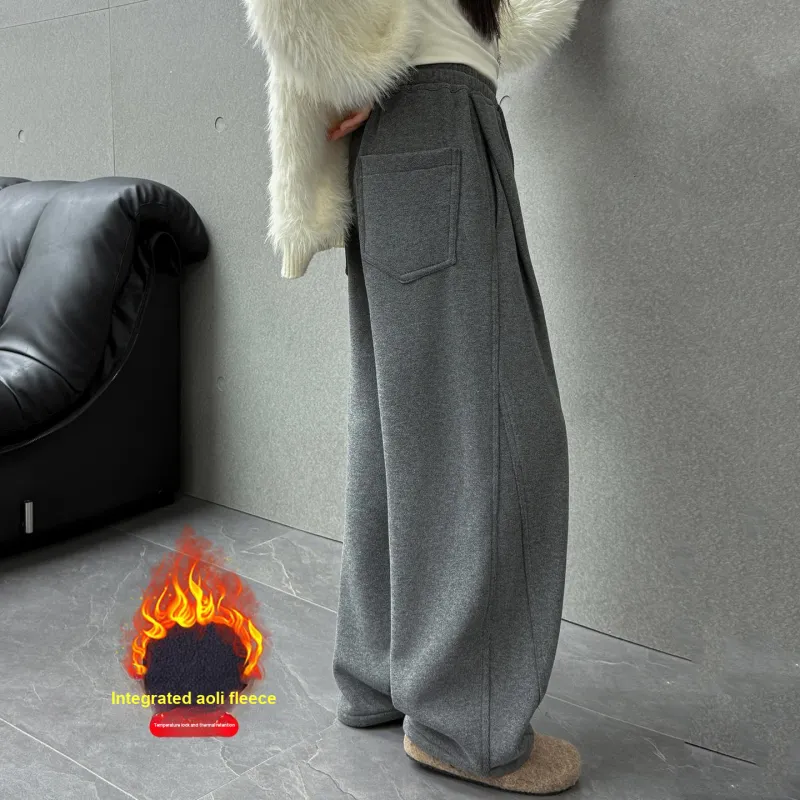 Black Gray Fleece-Lined Pants