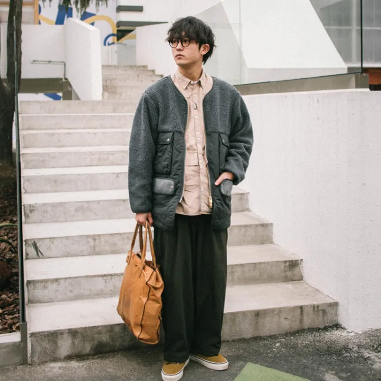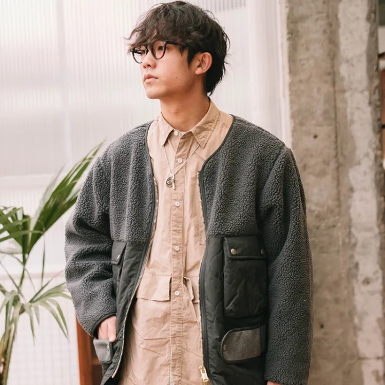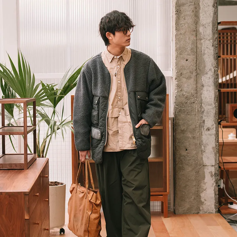 TEKABLU Без воротника Свободный крой Хлопковый пуховик Мужской Премиум серый