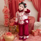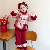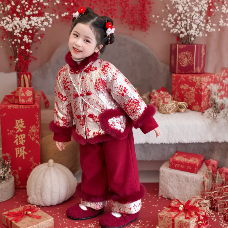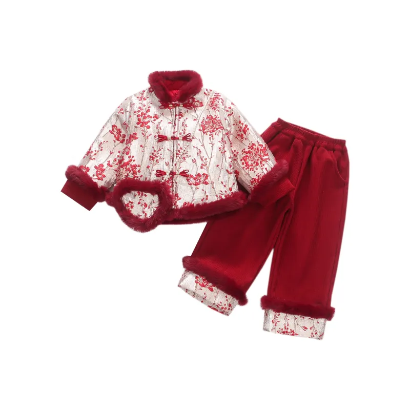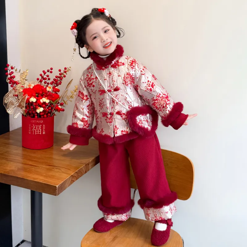 TELENT Красный Цветущая слива Китайский стиль Набор с Сумка KIDS Костюмы в стиле Тан