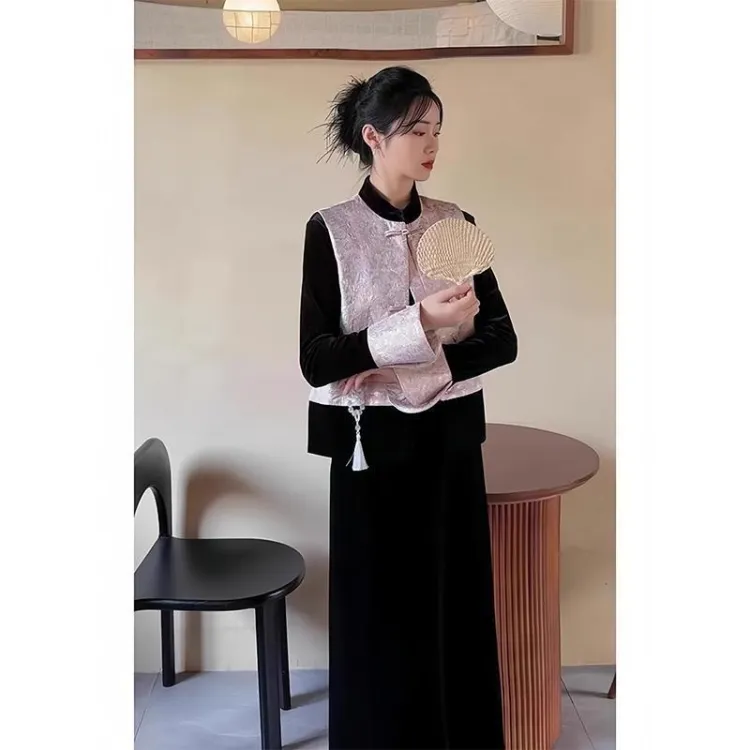 Розовый жилет + внутренняя одежда + юбка, трехкомпонентный комплект