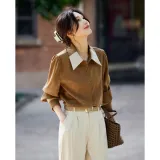 TERRE BLEUE Весенний Осенний Зимний Рубашка Свободного кроя Женская