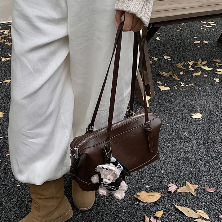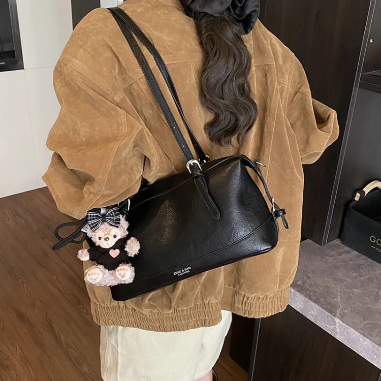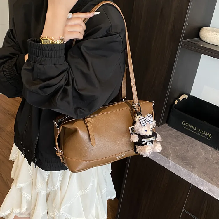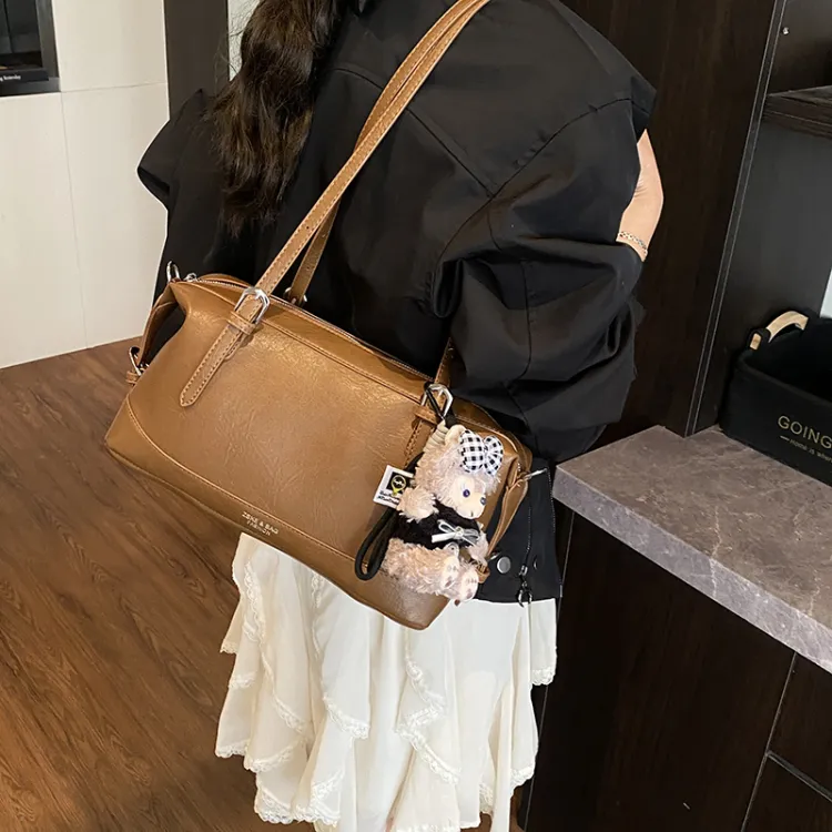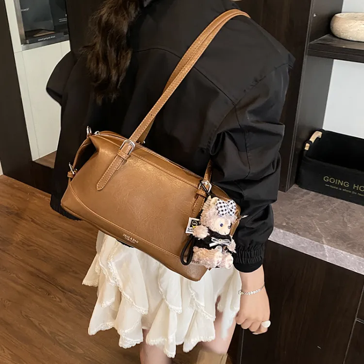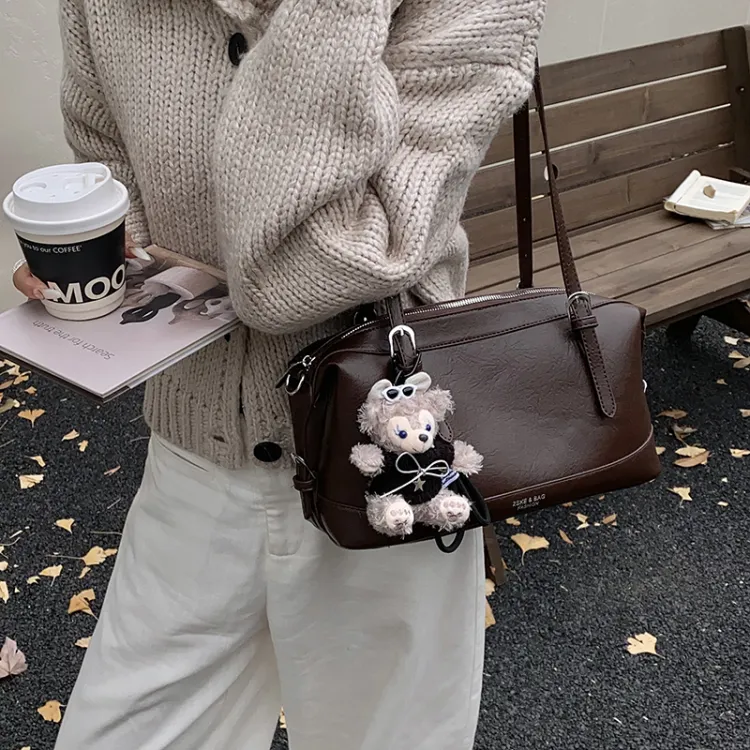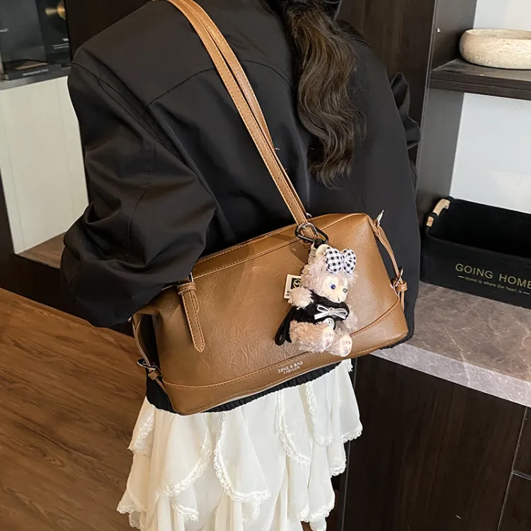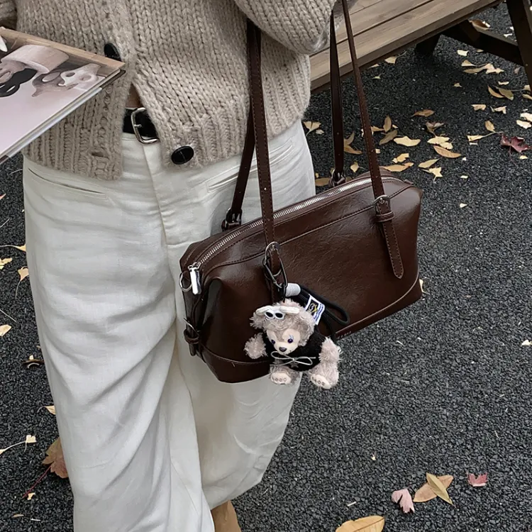 Tezimyt ПУ (полиуретан) Сумка через плечо Стандартная Кофейно-коричневый Черный