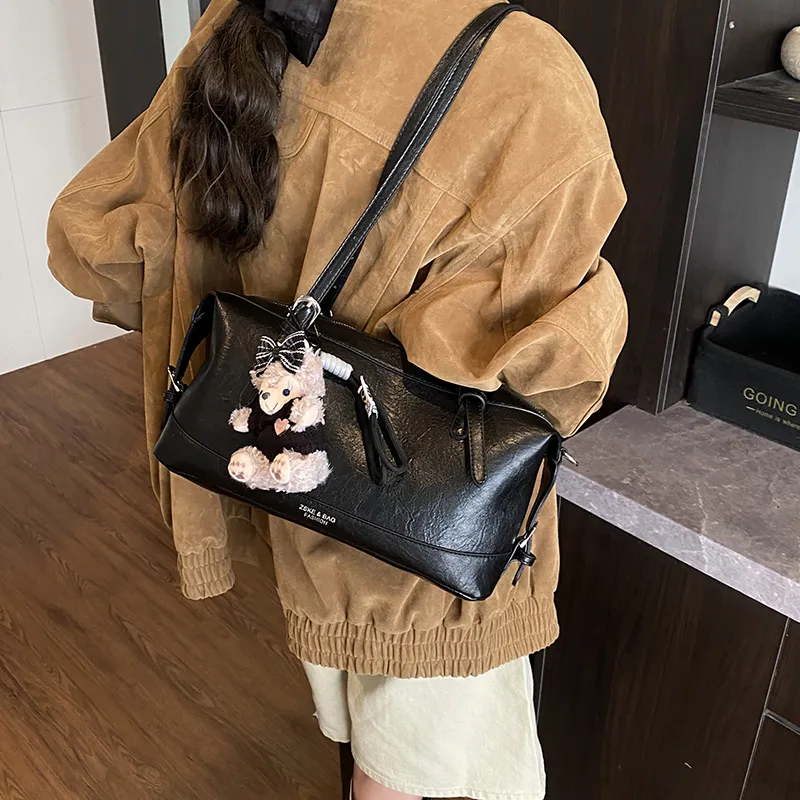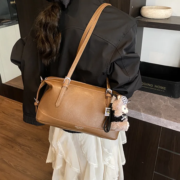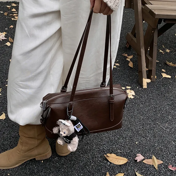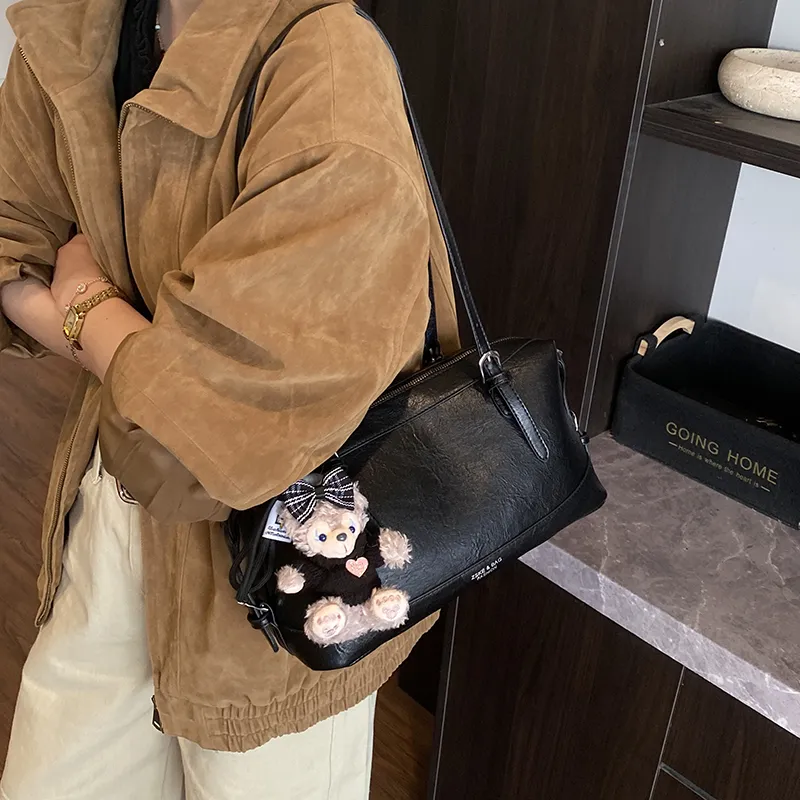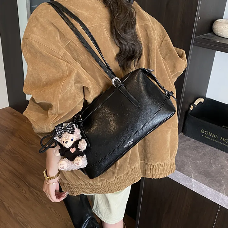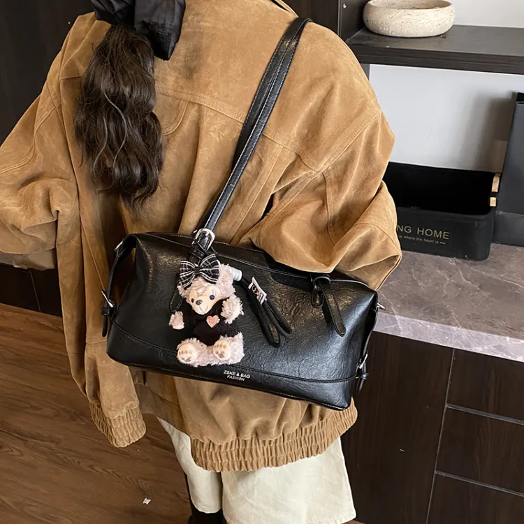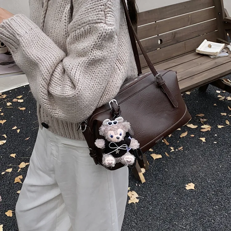 Tezimyt ПУ (полиуретан) Сумка через плечо Стандартная Кофейно-коричневый Черный