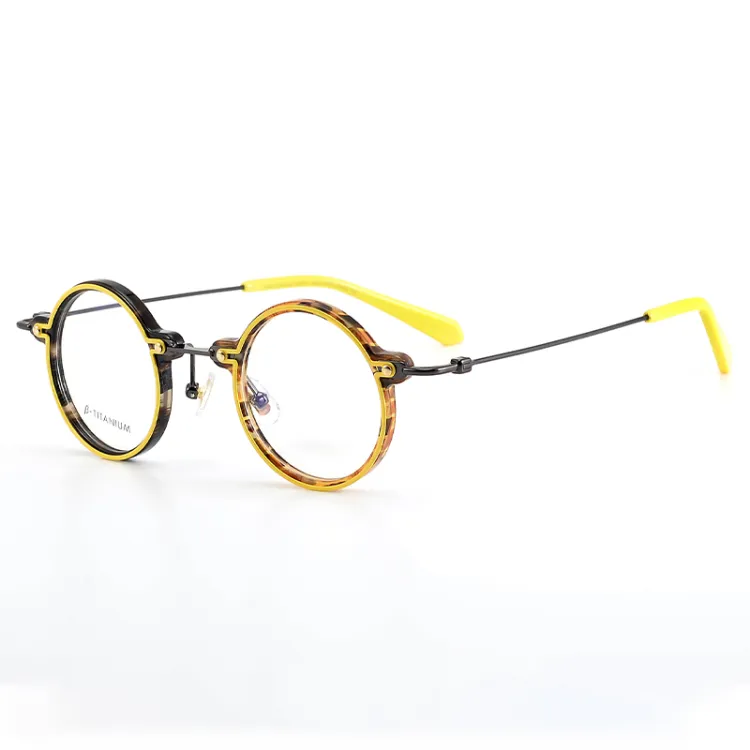 THANKSGIVING Титан Пластина And Титановый сплав Ацетат металла Круглые Оправы для очков Унисекс