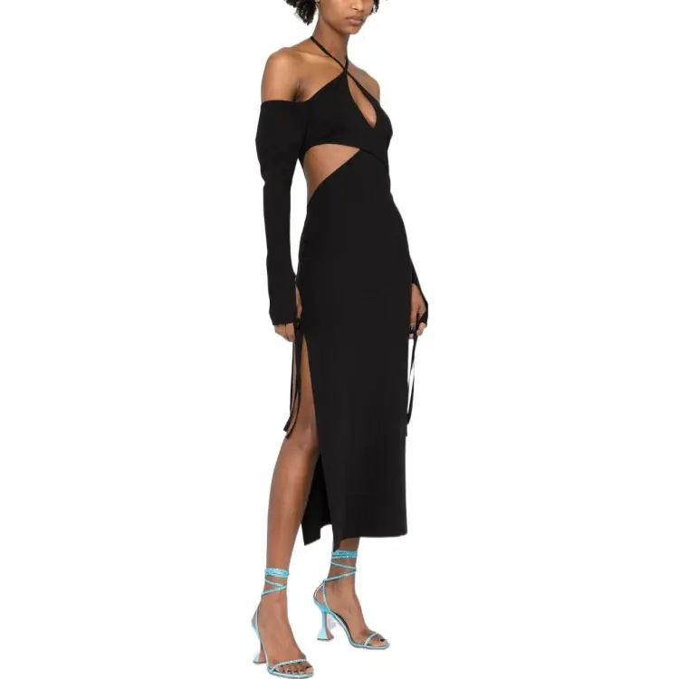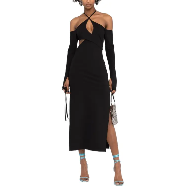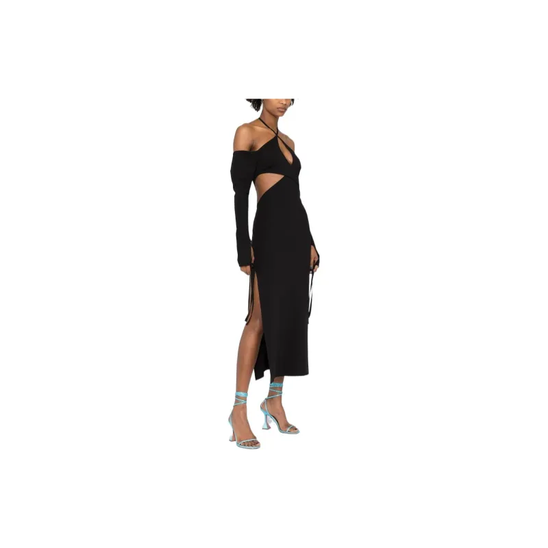 The Attico Черное Женское Длинное Платье с Рукавами