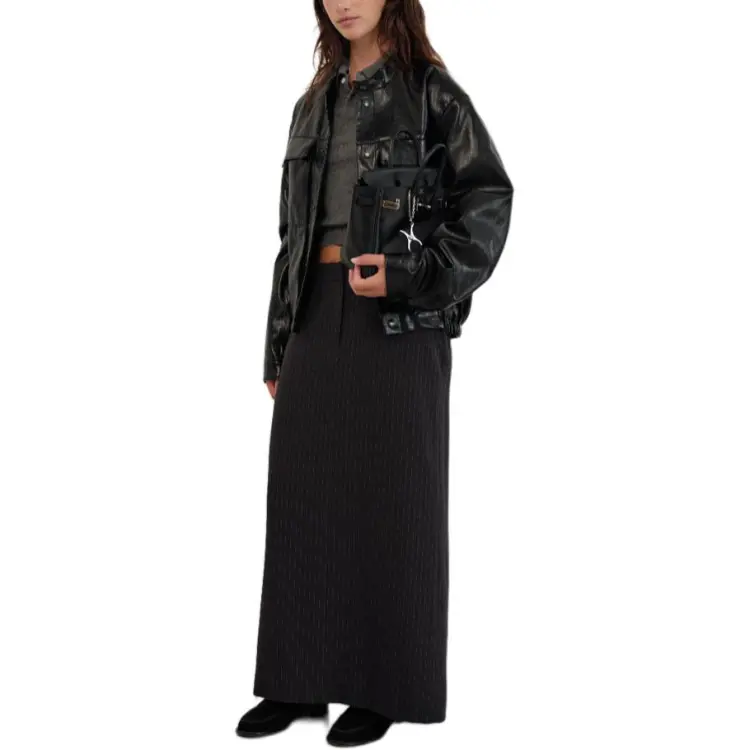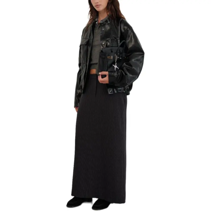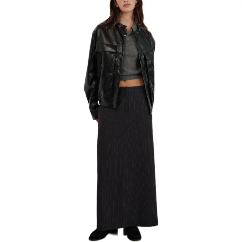 The Barnnet FW25 Eight Молоко Форма Низ Шов Maxi Юбка_Stripe Повседневный Длинный Юбка Женские