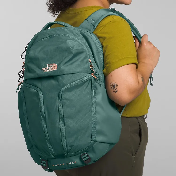 The North Face 31L Рюкзак Двойной Плечо На открытом воздухе Сумка Переработанный нейлон Deep Шалфейный Темный Коралловый Металлик Женские