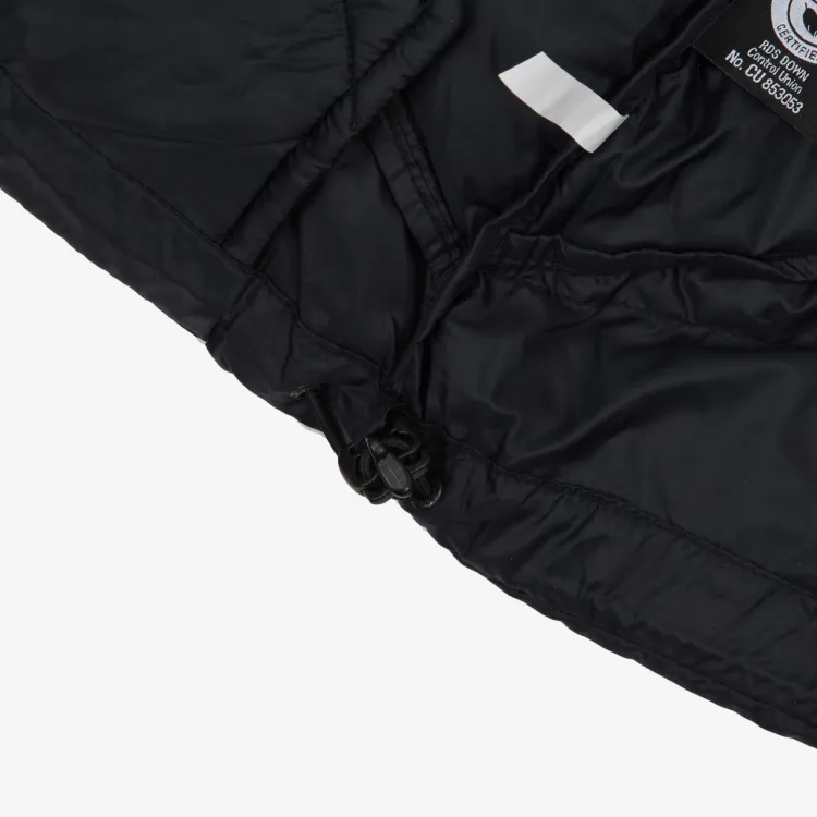 Основной материал: 100% полиамид Ткань кармана: 100% полиэстер Подкладка: 100% полиамид Наполнитель: 90% утиный пух, 10% утиный пух Подкладка: 100% полиэстер