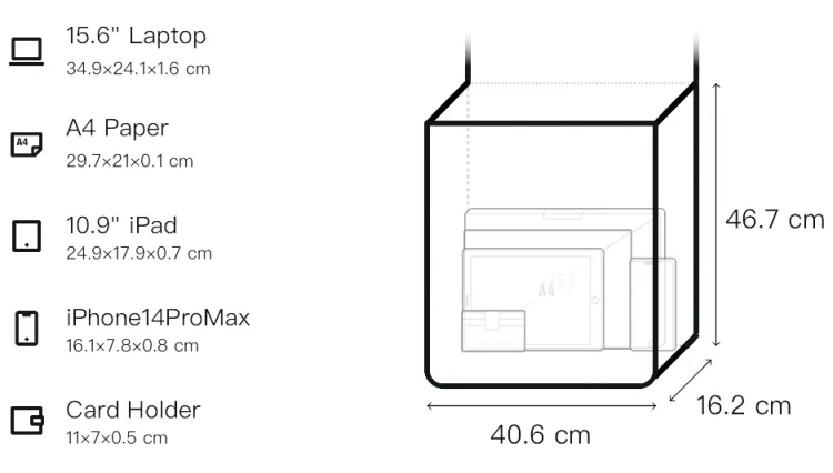 Д40,6*Ш16,2*В46,7 см