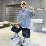 The panda is round Повседневная спортивная одежда 2 предмета комплект небесно-голубой серый для детей
