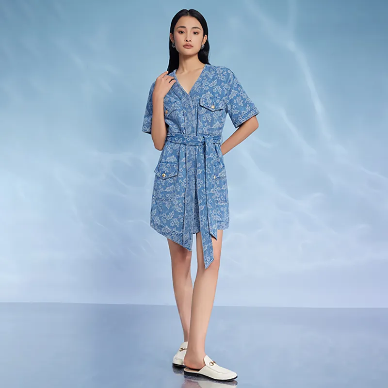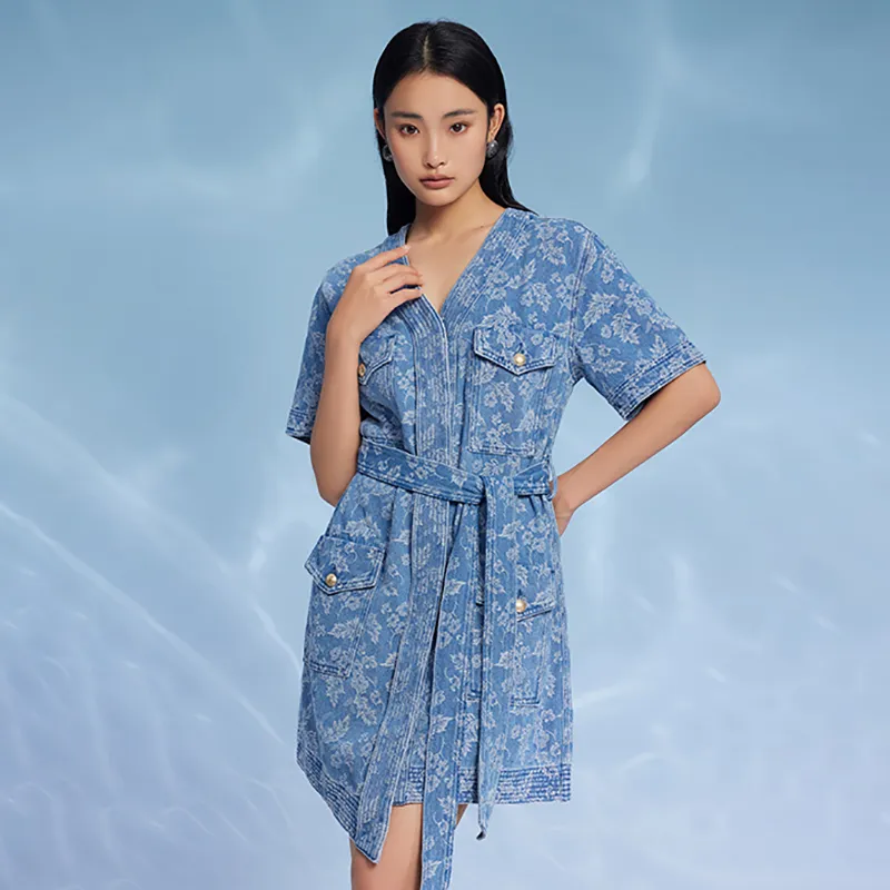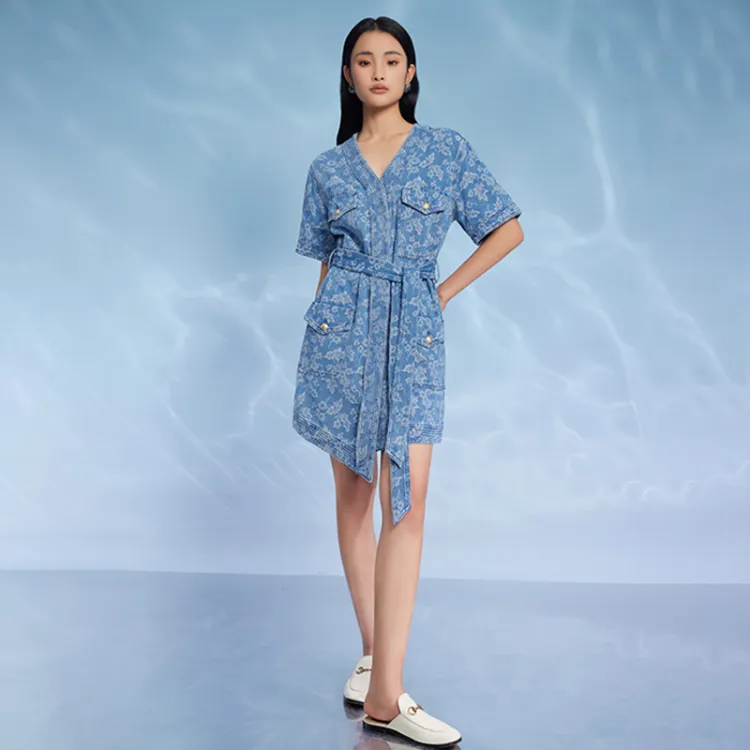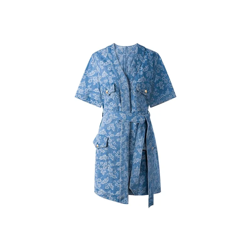 THE SEA LIFE Короткое платье с короткими рукавами женское джинсовый синий