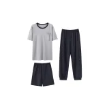 Gray Top + Dark Blue Shorts + Dark Blue Pants (3-Pack Set)