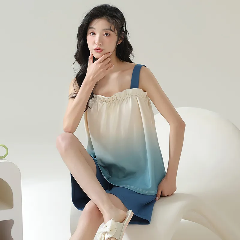 The Story Of The Flower Season Пижамный комплект Женские Синий Белый