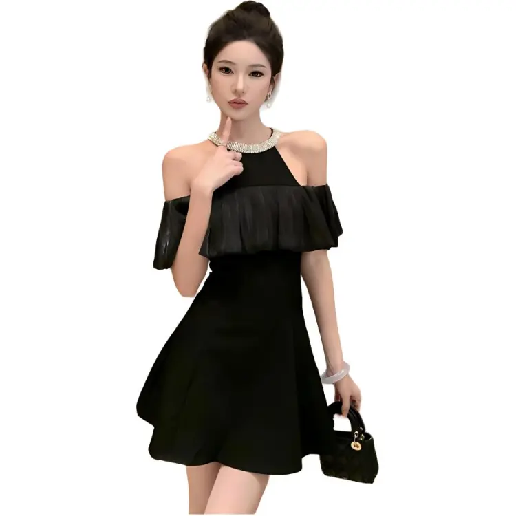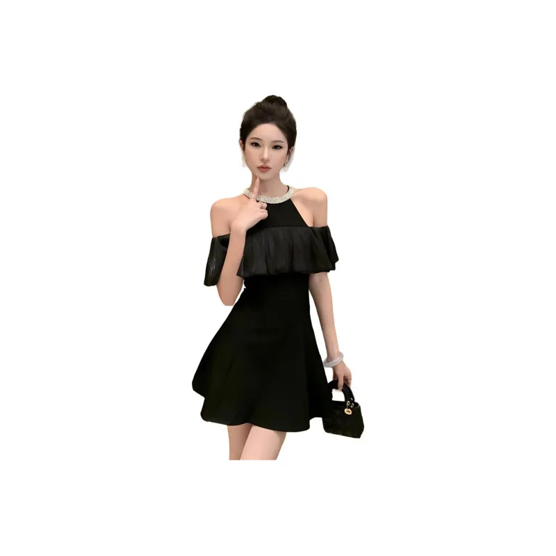 The Temptation Of The Muse Короткий рукав Платье Женское Черное