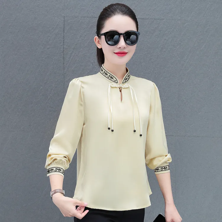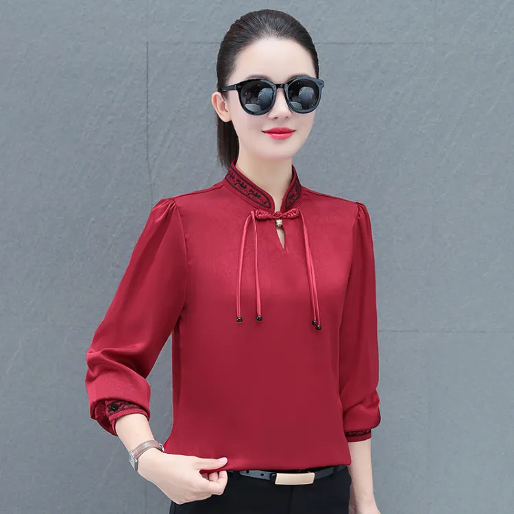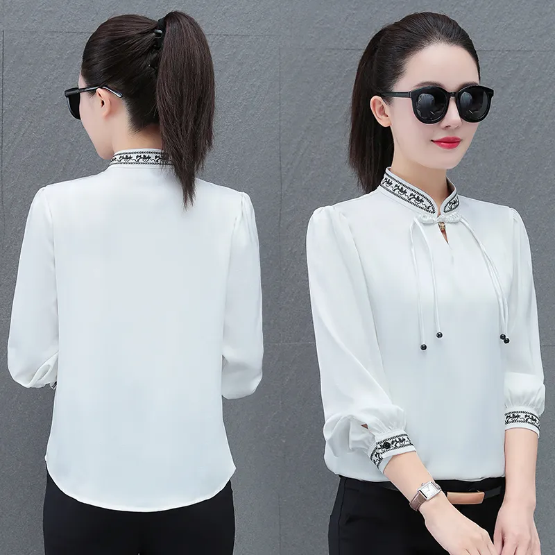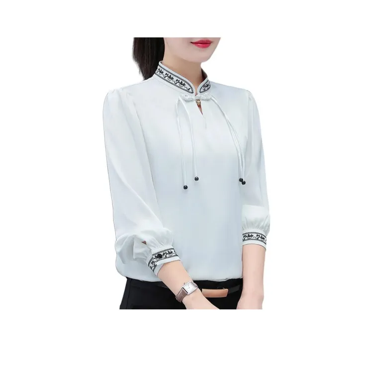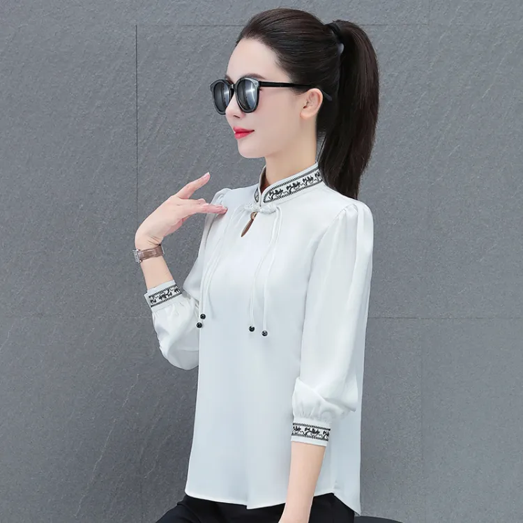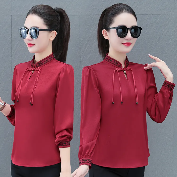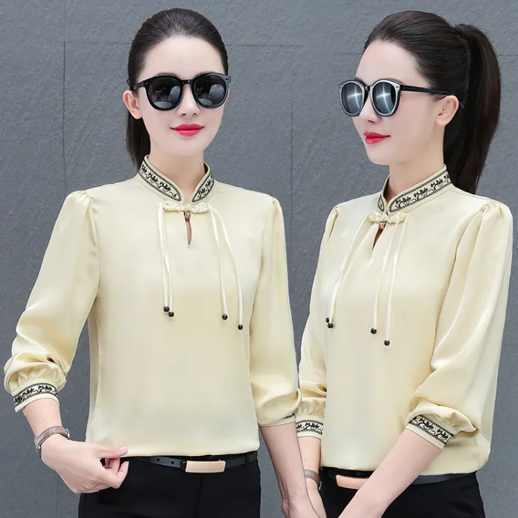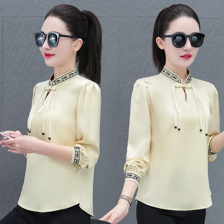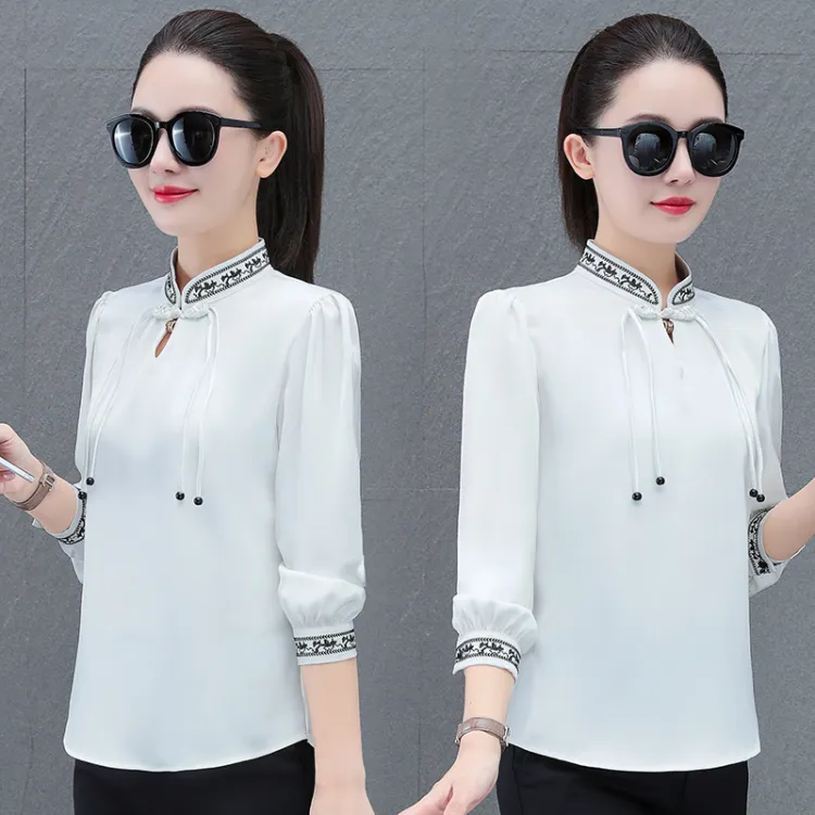 The Temptation Of The Muse Воротник-стойка Дизайн Длинный рукав Рубашка Женская