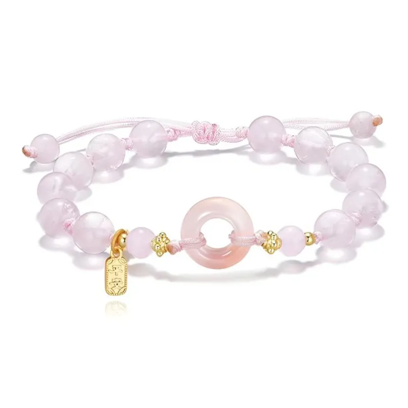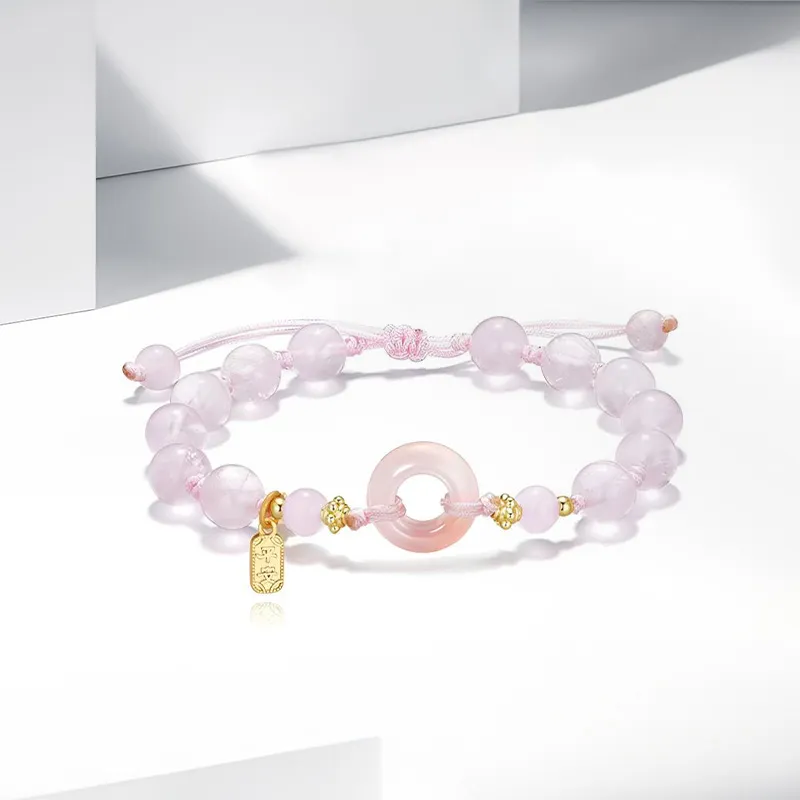 Стиль:Браслет "Богатство, Благословение, Замковая Мир" [Розовый шнур]
