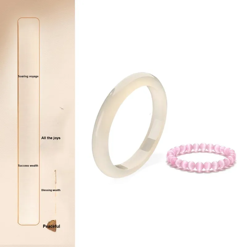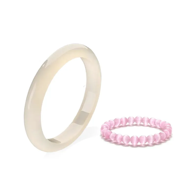Розовый браслет с бусинами "Кошачий глаз" без рисунка + шампанское 52-54