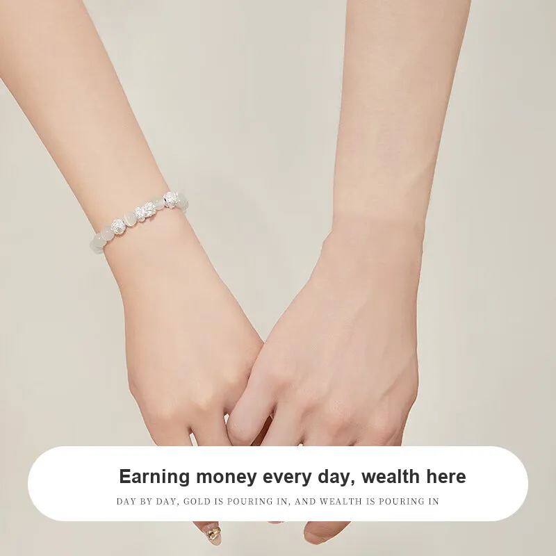 Медная монета Китайское благоприятное животное Малыш Браслет с бусинами + Браслет «Белый лунный свет» 58-60