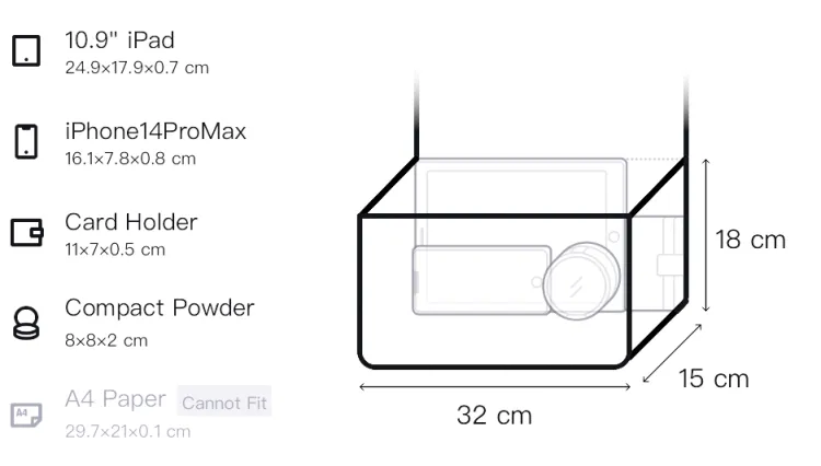Д32*Ш15*В18см