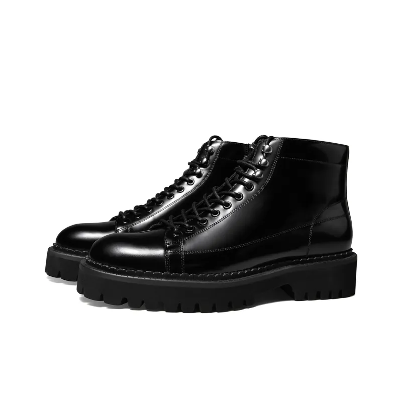 THOM WILLS Британский стиль Блестящий Повседневные ботинки Короткий Мартин Ботинок Мужской Черный