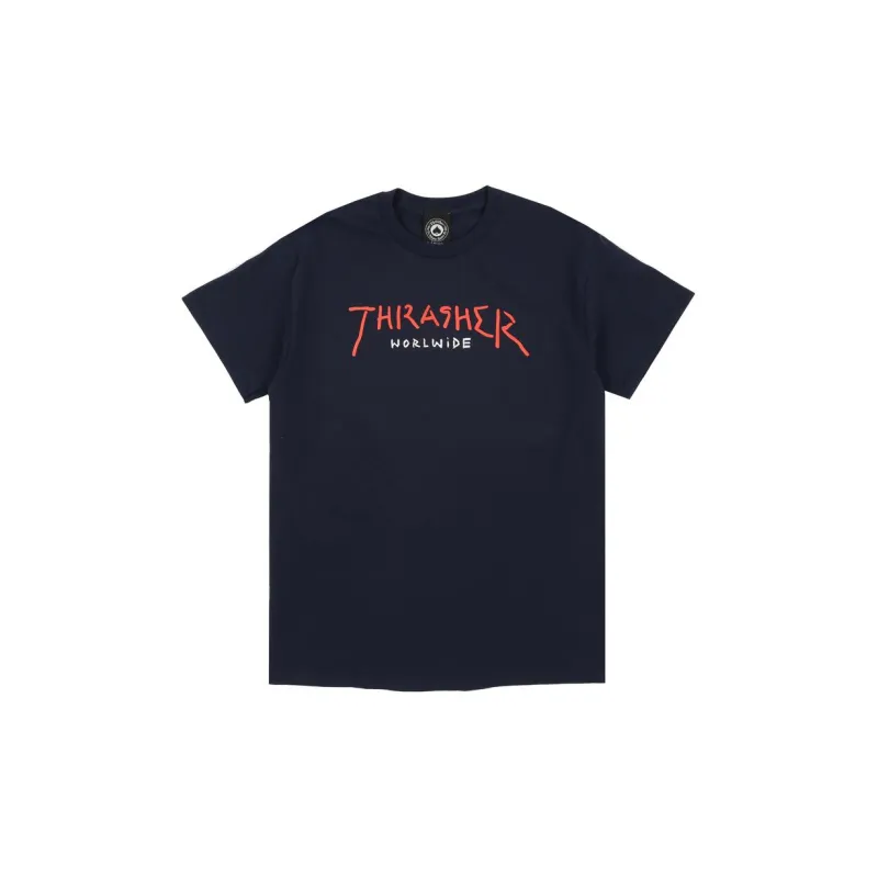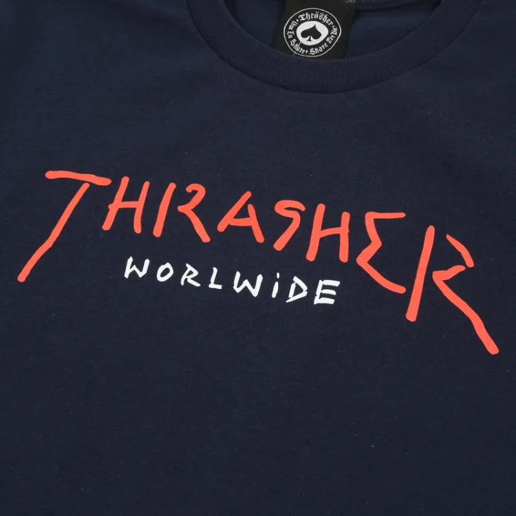 Thrasher SS22 Рукав с оборванным плечом T-рубашка Унисекс Темно-синий Версия для США