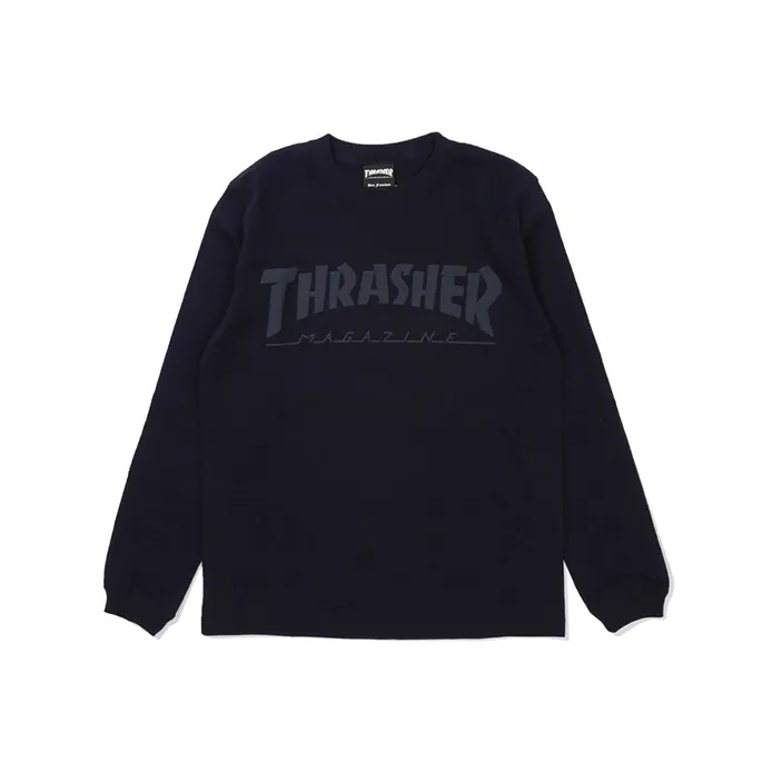 Thrasher Прямой крой Длинный рукав Т-рубашка Японская версия Унисекс Темно-синий