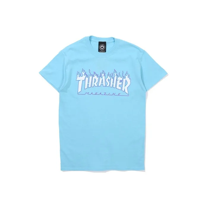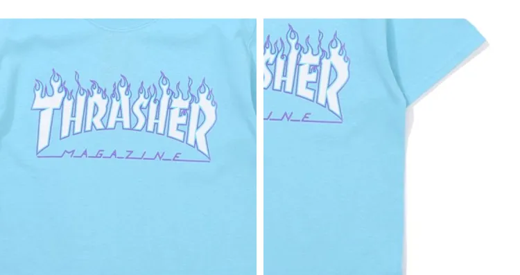 Thrasher Прямой крой T-рубашка Японская версия Унисекс Небесно-голубой