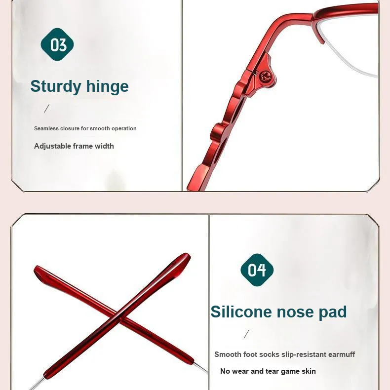 Фиолетово-красная рамка + +400 градусов для пресбиопии + подарочная коробка (рекомендуется для 70-74 лет)