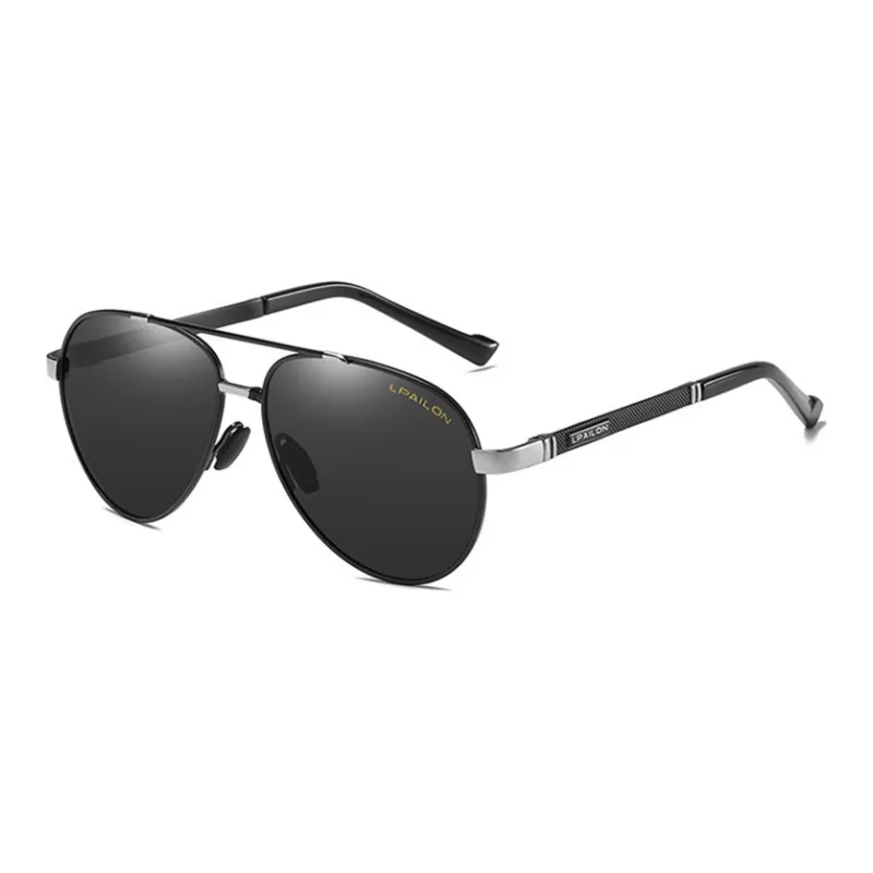 Стиль:Черная серебряная оправа + поляризованные черные серые линзы + коробка