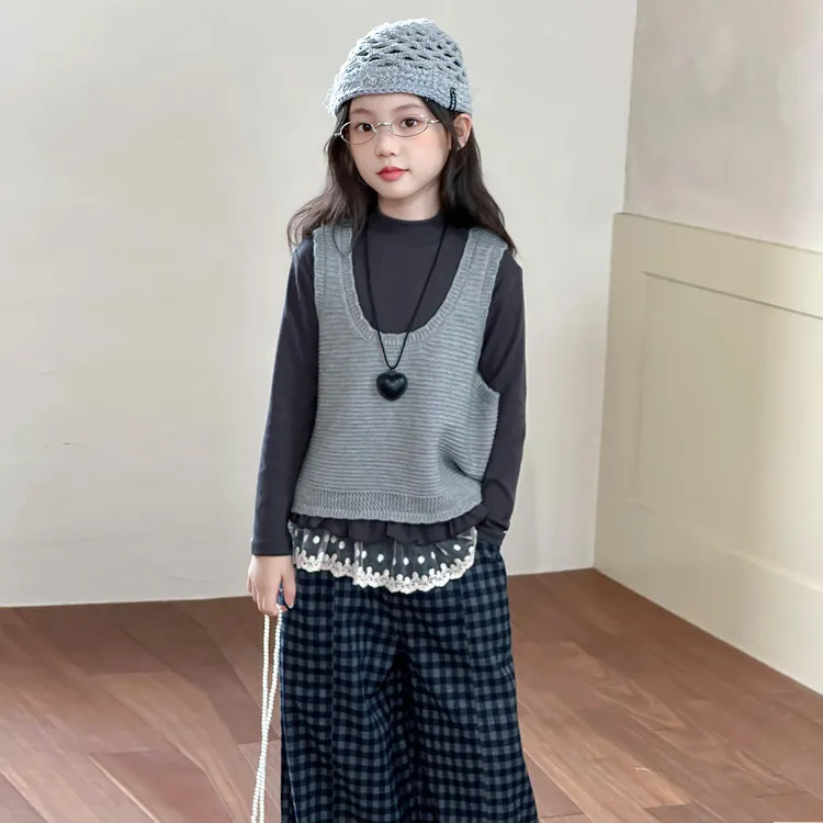 Цвет:Топ, жилет, двухкомпонентный комплект + клетчатые штаны