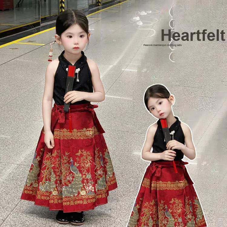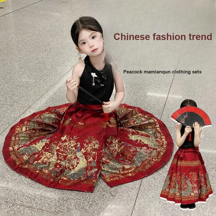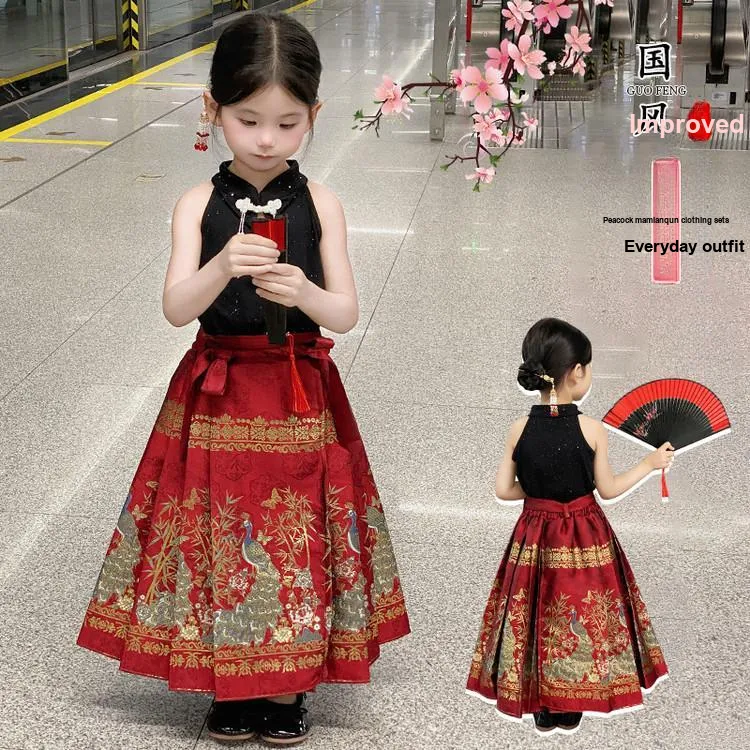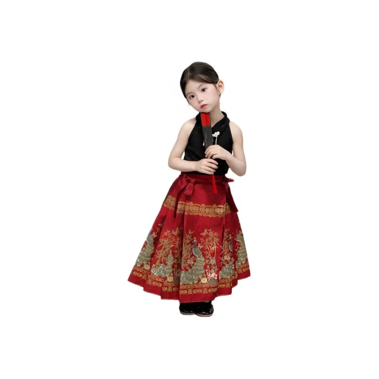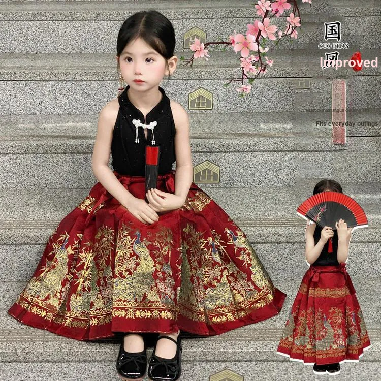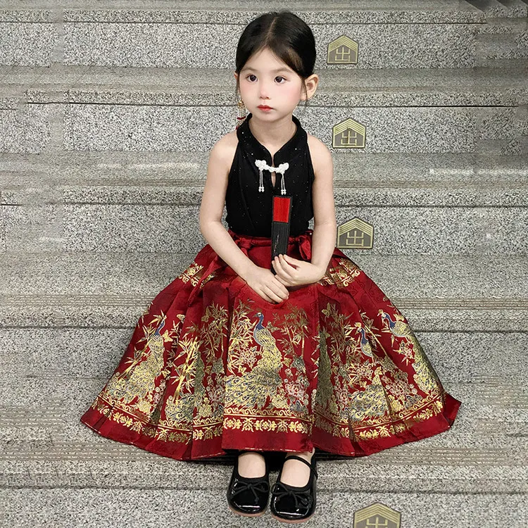 TIANCAIXIAOXIONG Китайская юбка с узором "конское лицо" Наборы одежды с Extra шпильками для волос для детей Ханьфу
