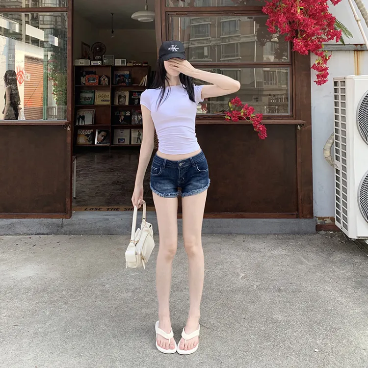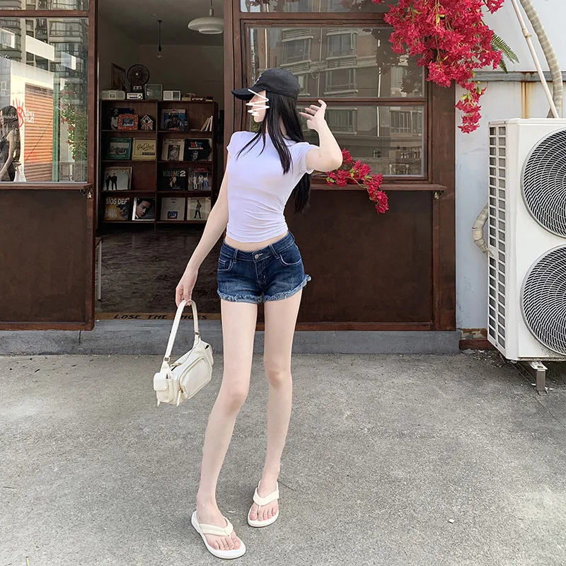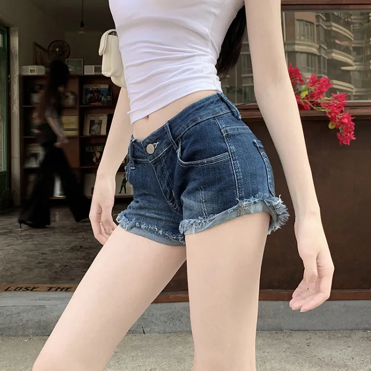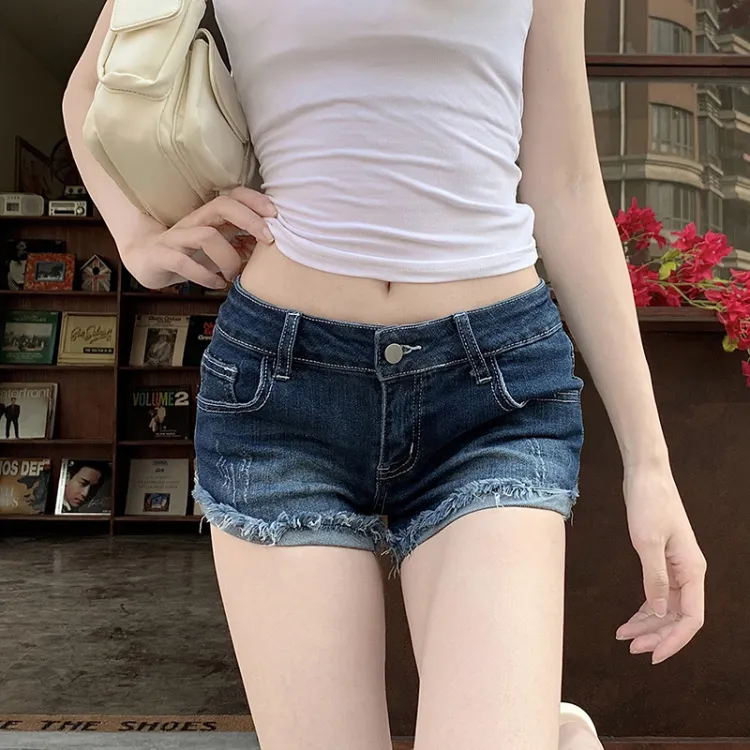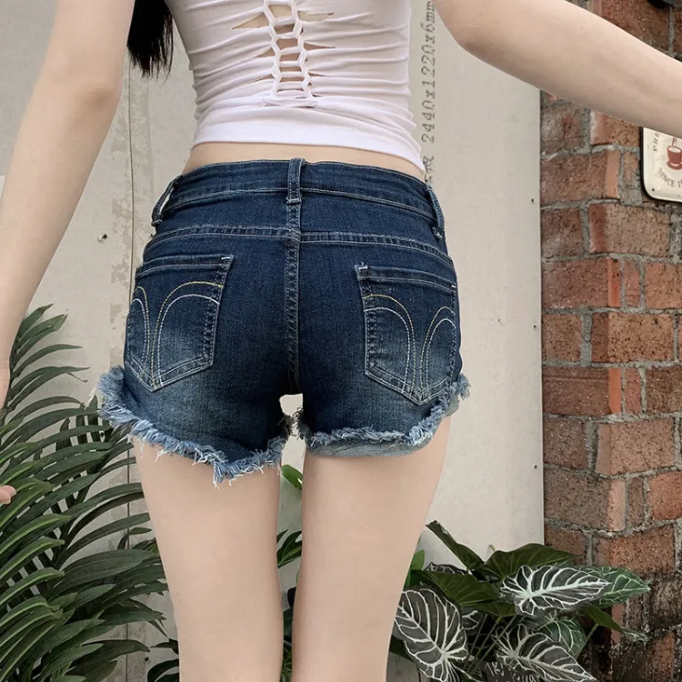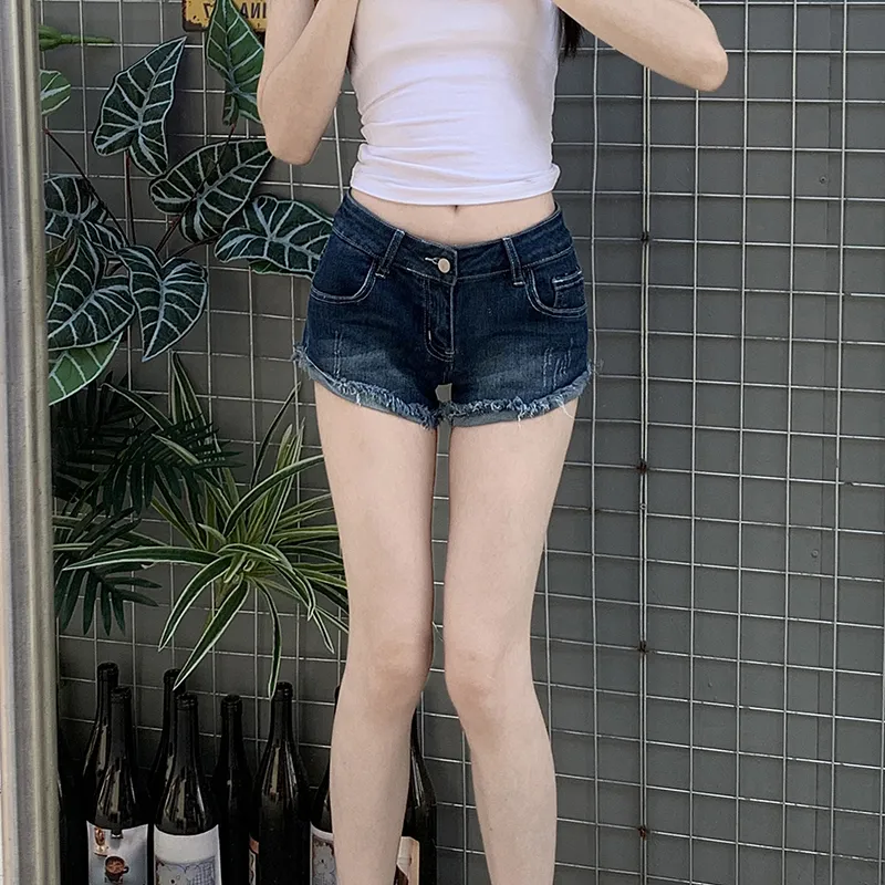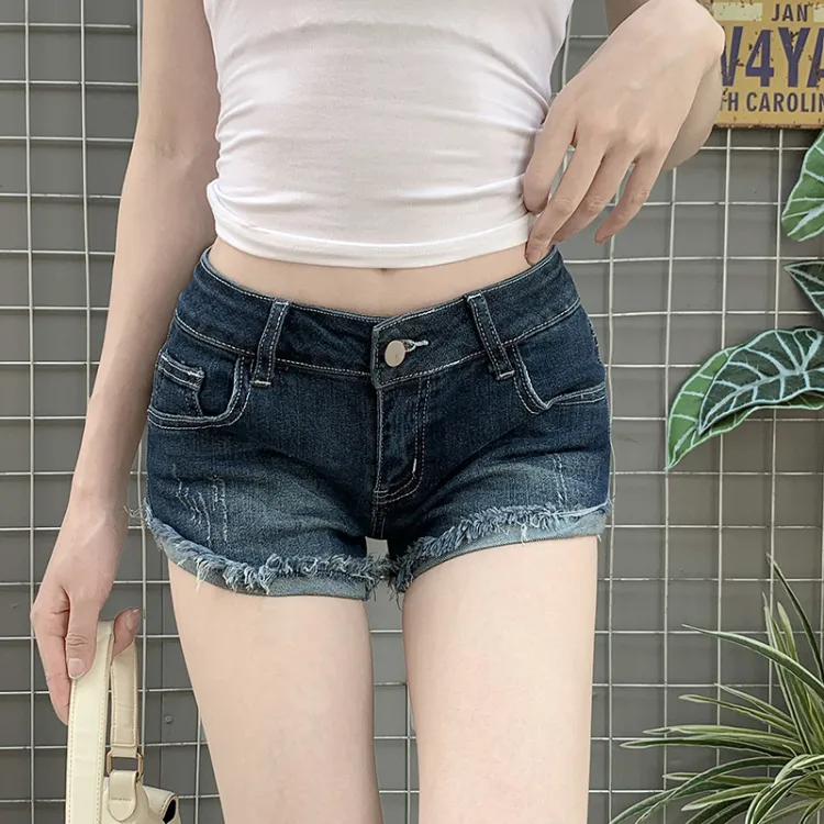 TIBINB Темно-синие женские джинсовые шорты