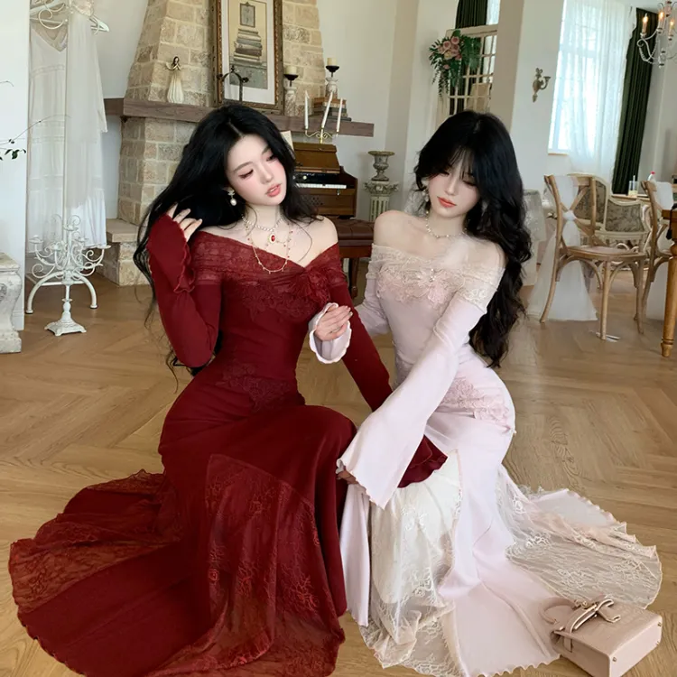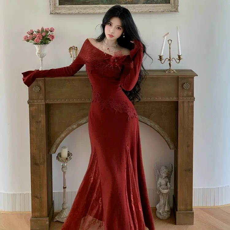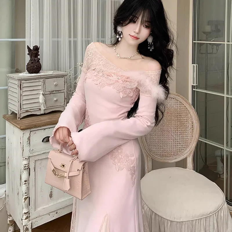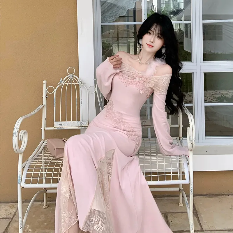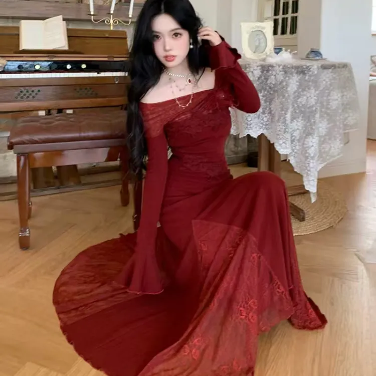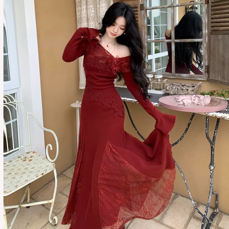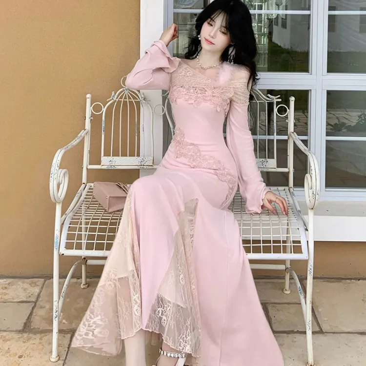 TIBINB Длинное платье с длинными рукавами женское