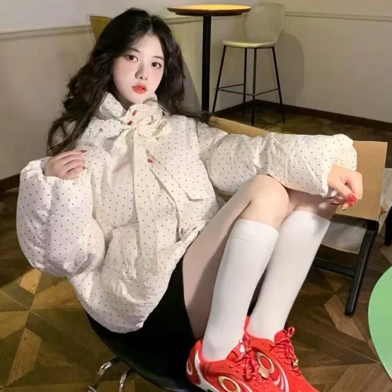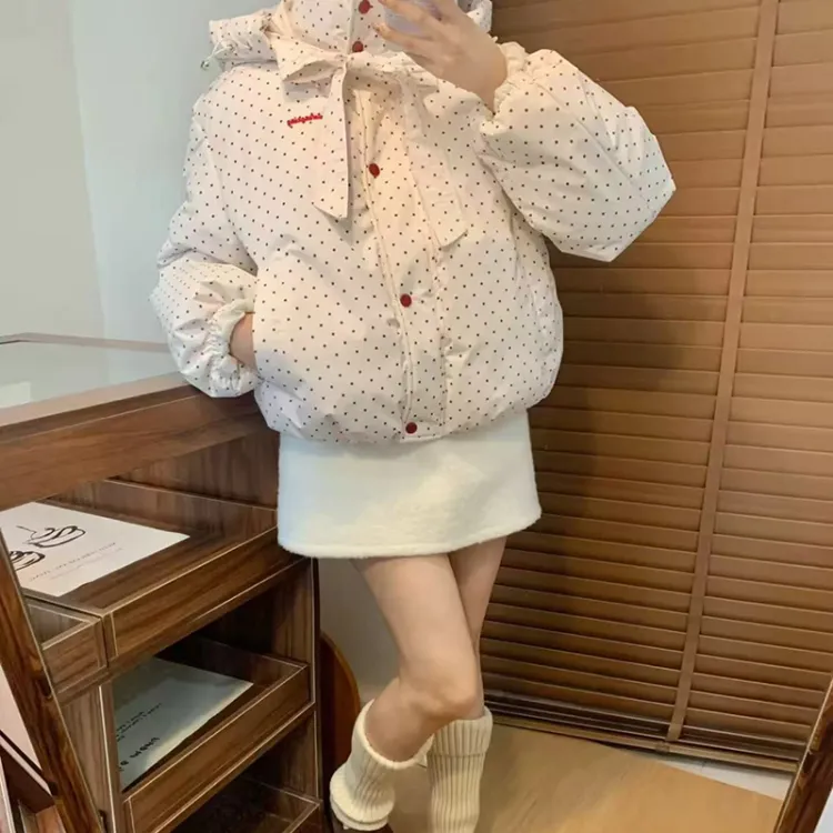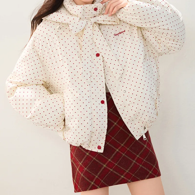 TIBINB Белый Гороховый узор Премиум Edition Женские Пуховики