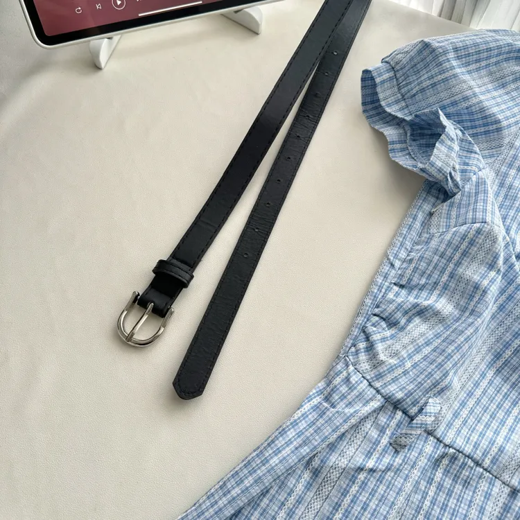 Светло-синяя юбка в клетку с ремешком