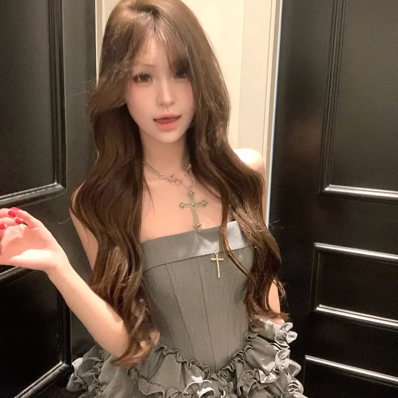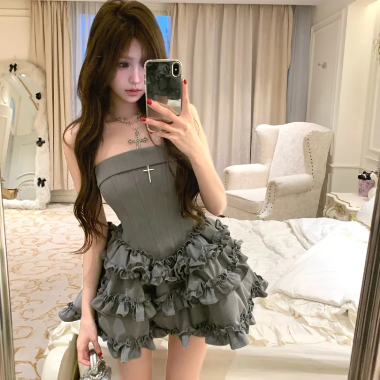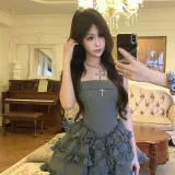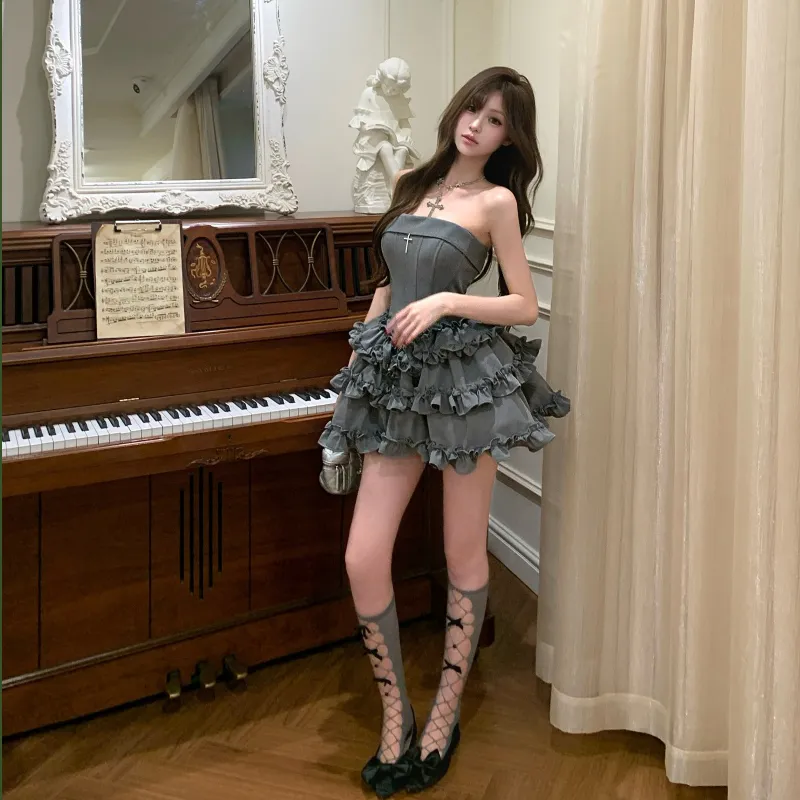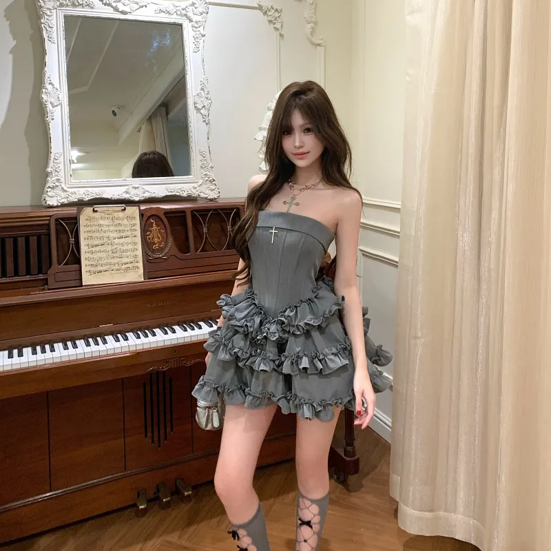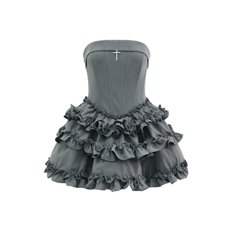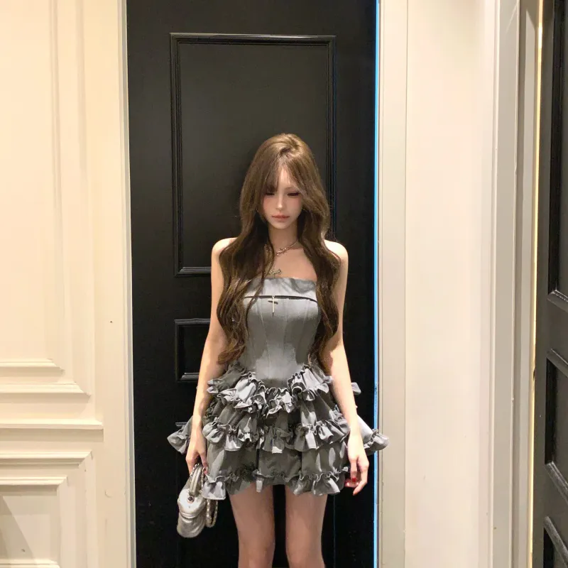 TIBINB Без рукавов Платье Женское Серое