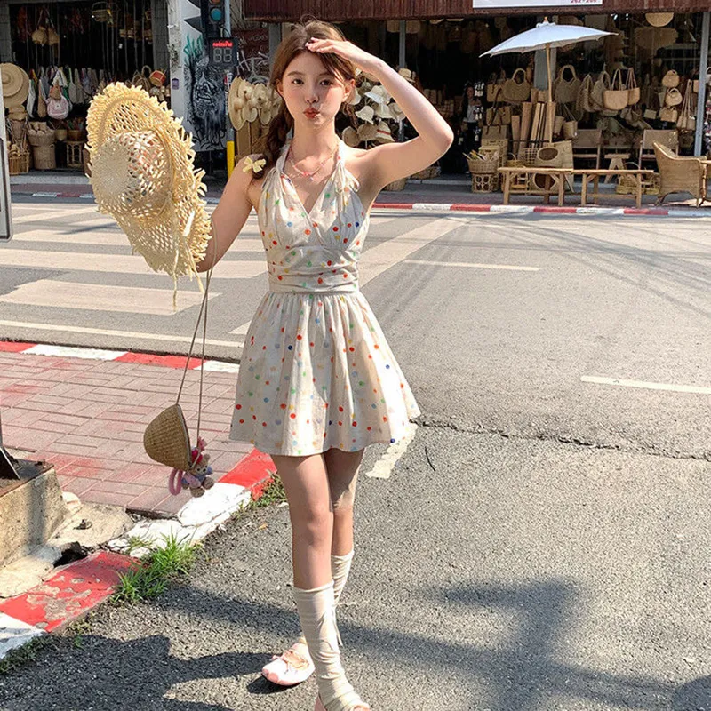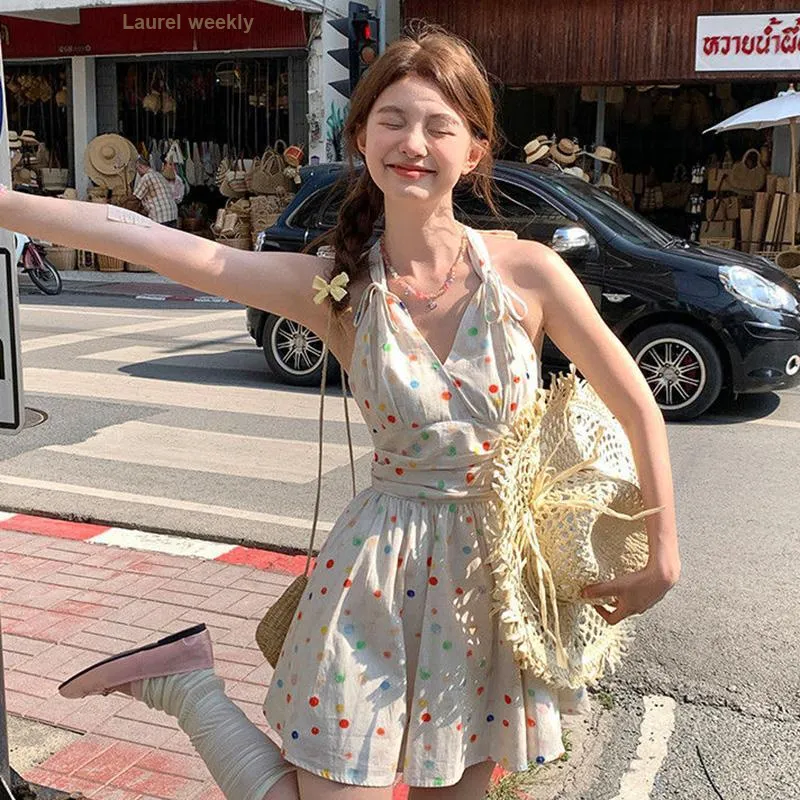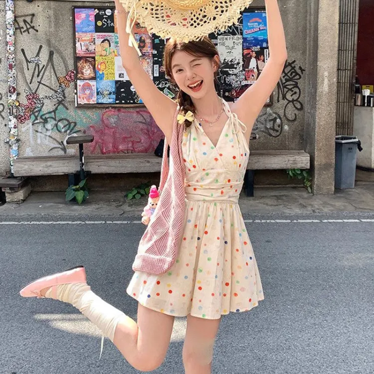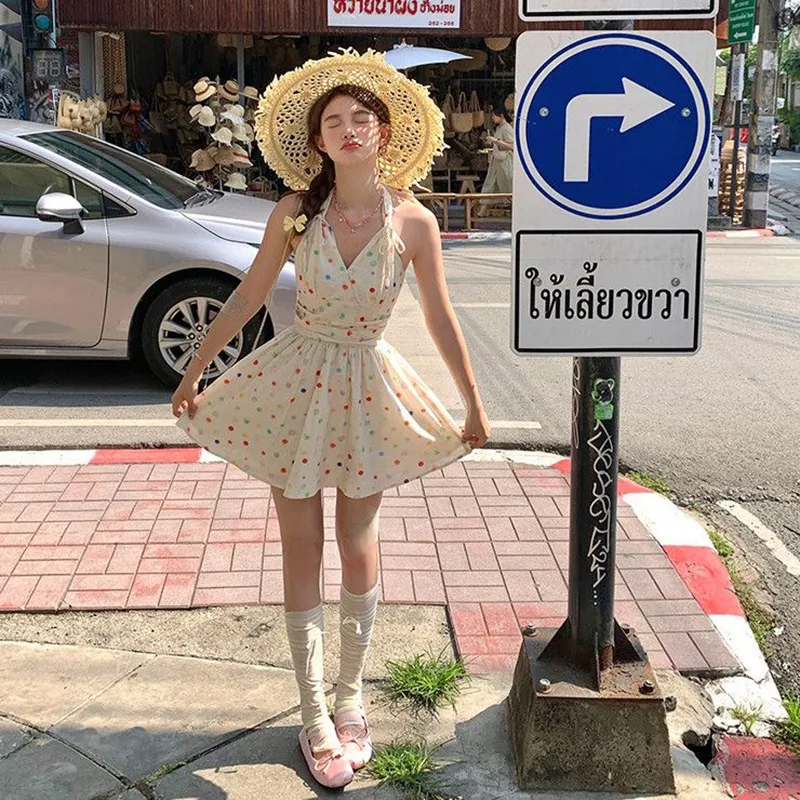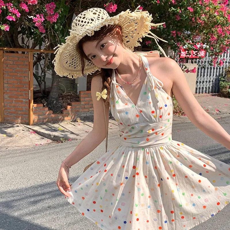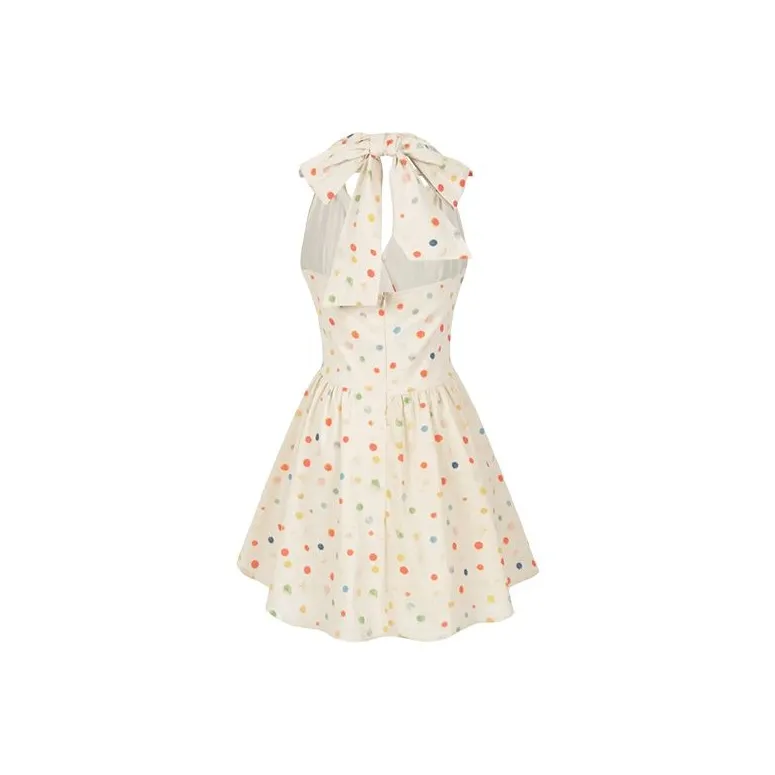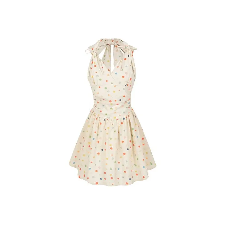 TIBINB Без рукавов Платье Женское с гороховым узором Платье