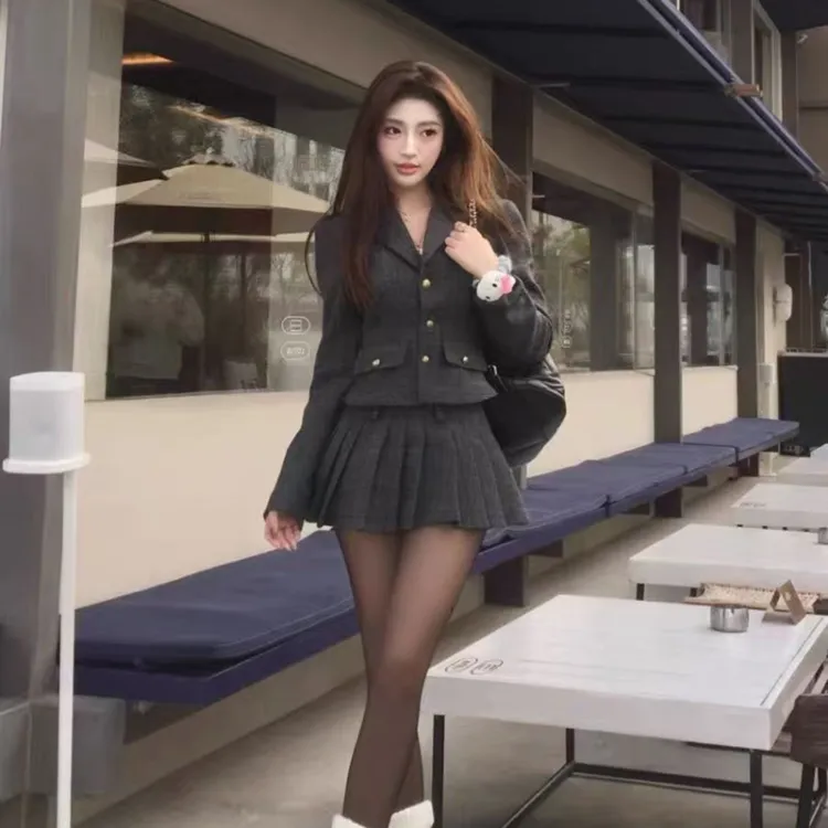 Комплект:Высококачественный серый комплект (топ + юбка)