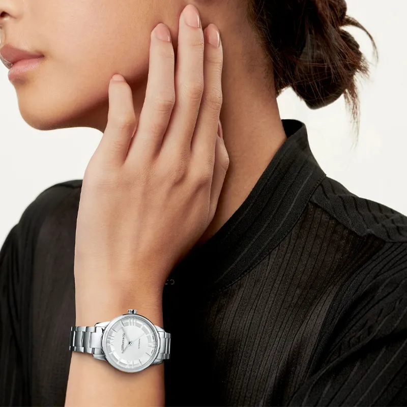 TIFFANY & CO. Часы С Автоподзаводом 34 Мм Корпус Из Нержавеющей Стали Опаловый Циферблат Белого Цвета