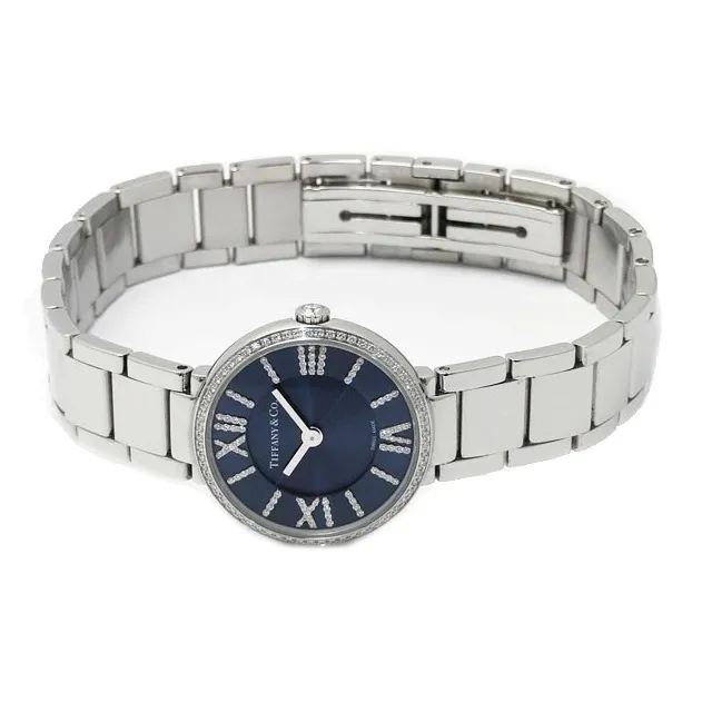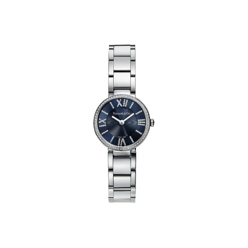 TIFFANY CO. Women's Watch Кварцевый механизм ремешок из нержавеющей стали 24 мм синий циферблат