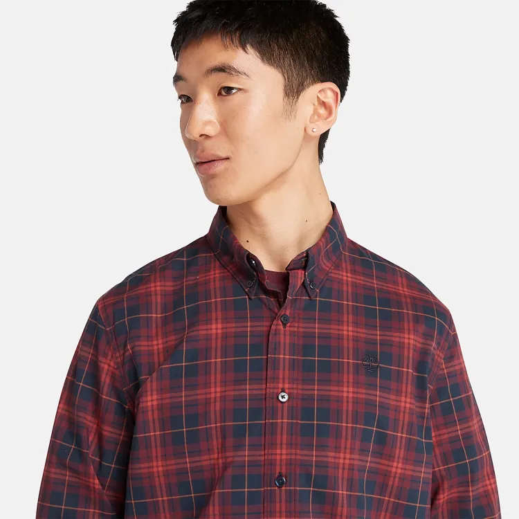 Timberland Эластичный Поплин Тартан Рубашка Мужская Темно-Красная