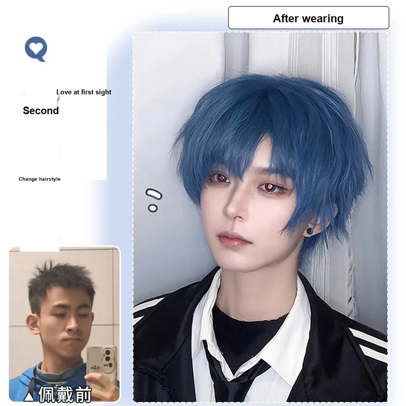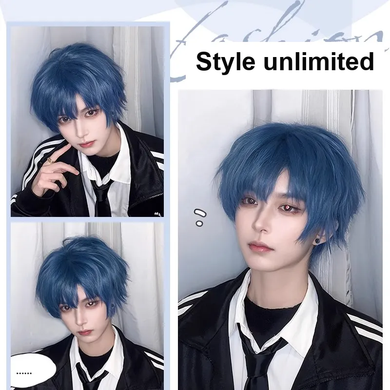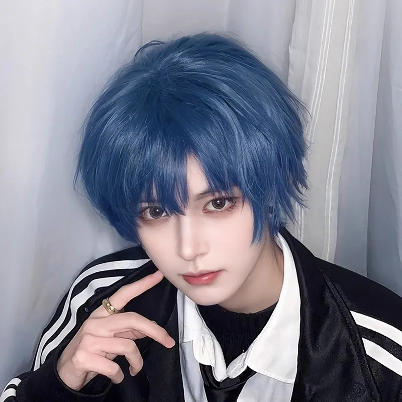 SHIYING Синий Перука Мужская Короткая Волосы Zhengtai Все ЦЕЛЕЙ Основа Волосы Естественный Для Объема Шампунь