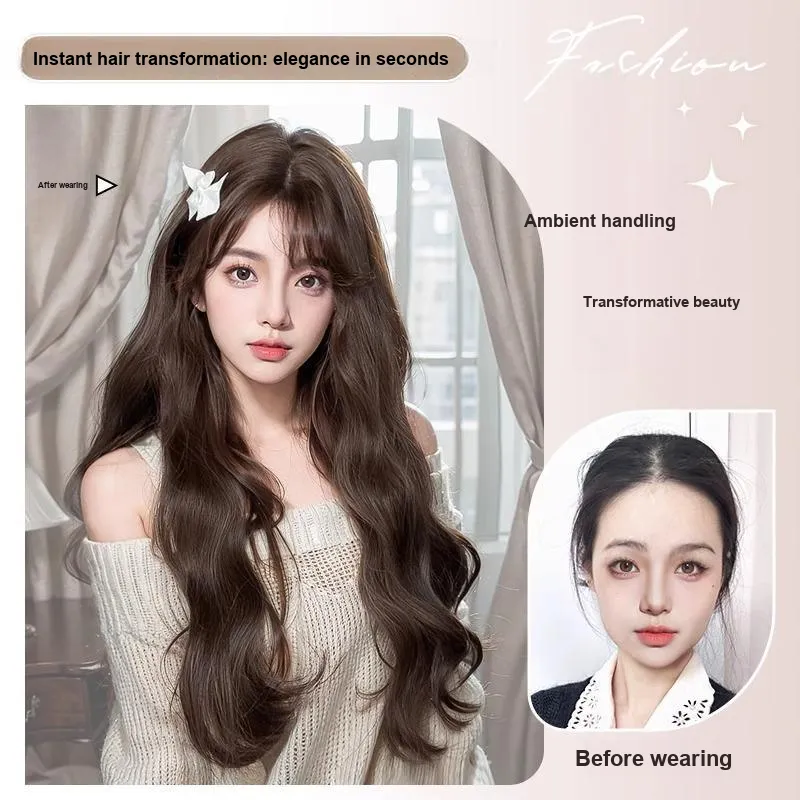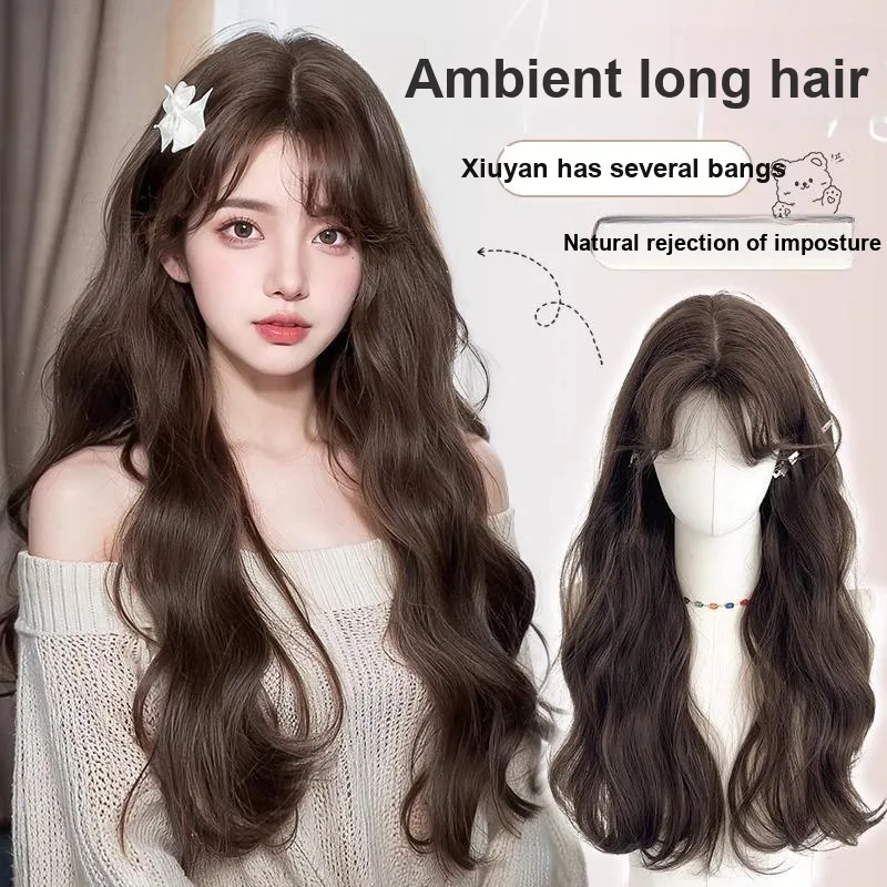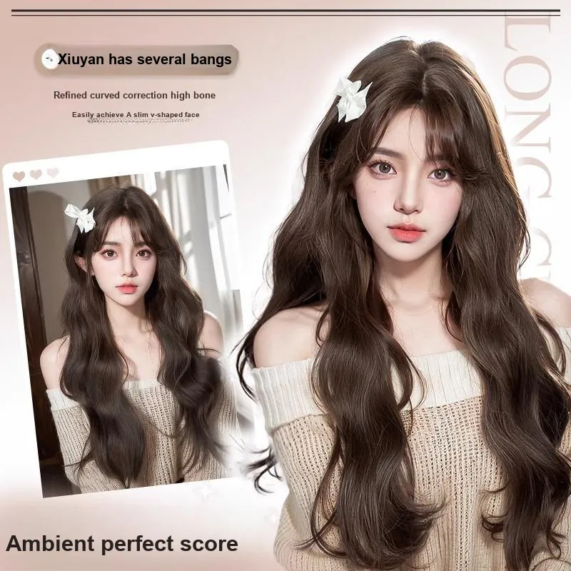 Time Shadow Длинные волосы с CENTER частью и водной рябью позиционирование стиля модный натуральный шерстяной завиток парик