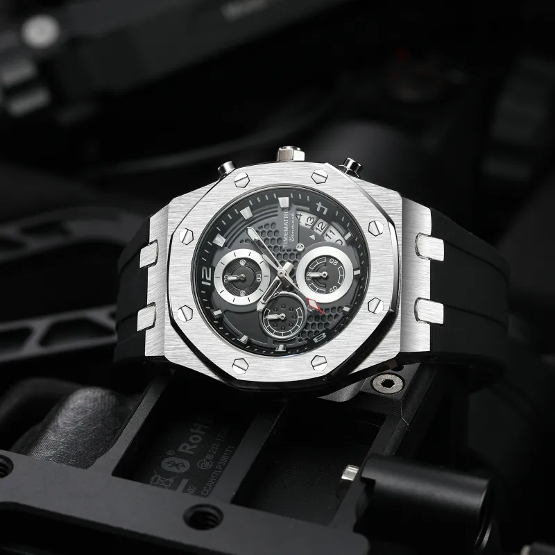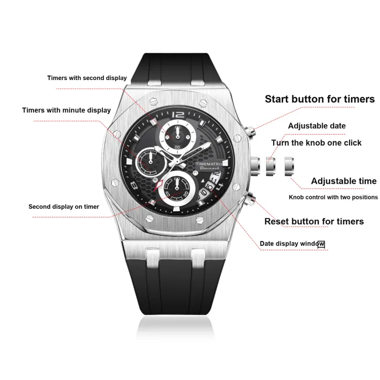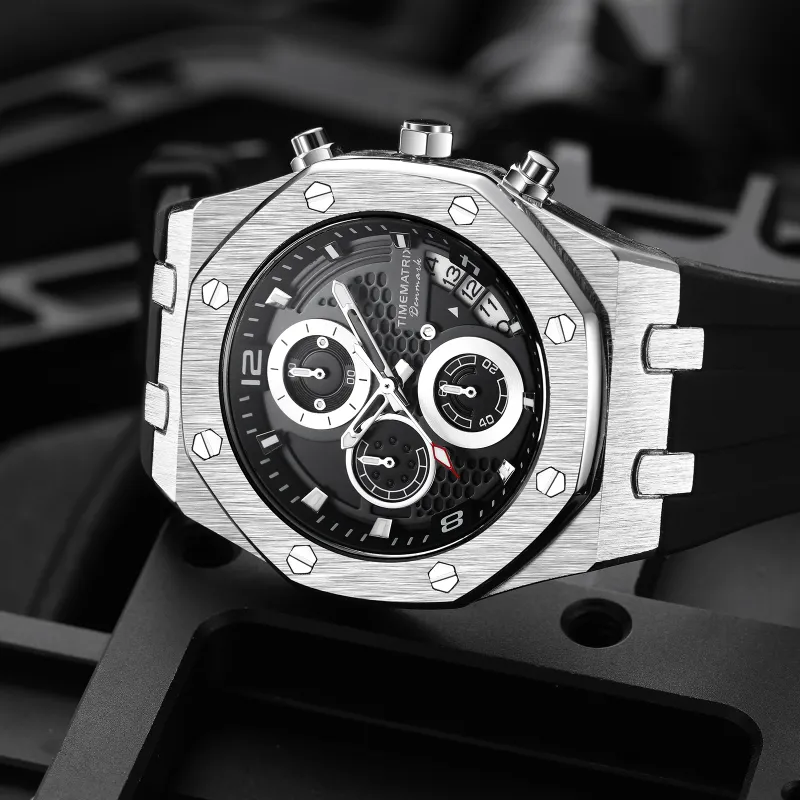 TIMEMATRIX Европейские US Часы THREE Рука Хронограф Многофункциональный Mechanical Style Дизайн HONEYCOMB Циферблат