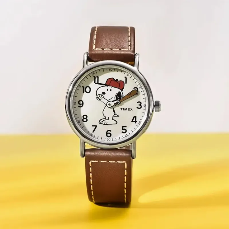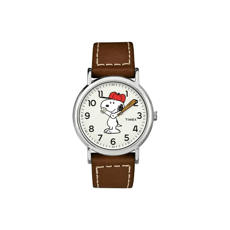 TIMEX Peanuts Snoopy Коллаборация Коллекция Наручные часы Кварцевый механизм Кожаный ремешок Белый циферблат Унисекс