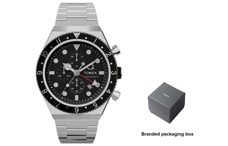 TIMEX Q Series Мужские часы Кварцевый механизм Ремешок из нержавеющей стали 40 мм Черный циферблат
